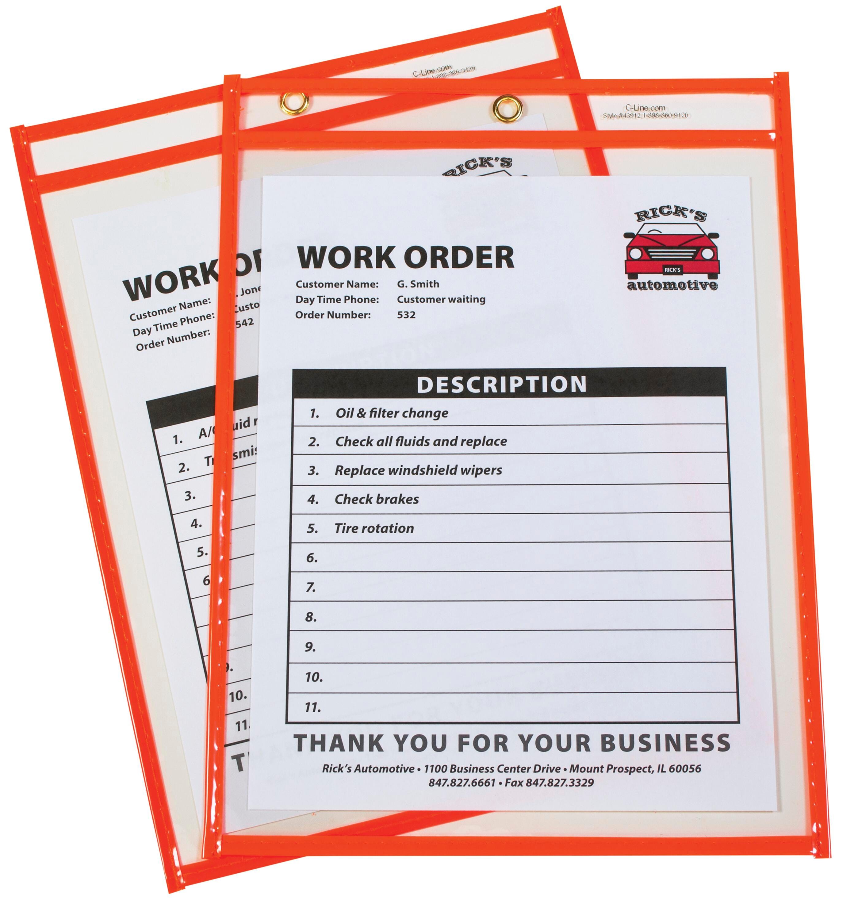 C-Line Dry-Erase Reusable Pockets, Neon Orange, 9 x 12 Inches, Pack of 15