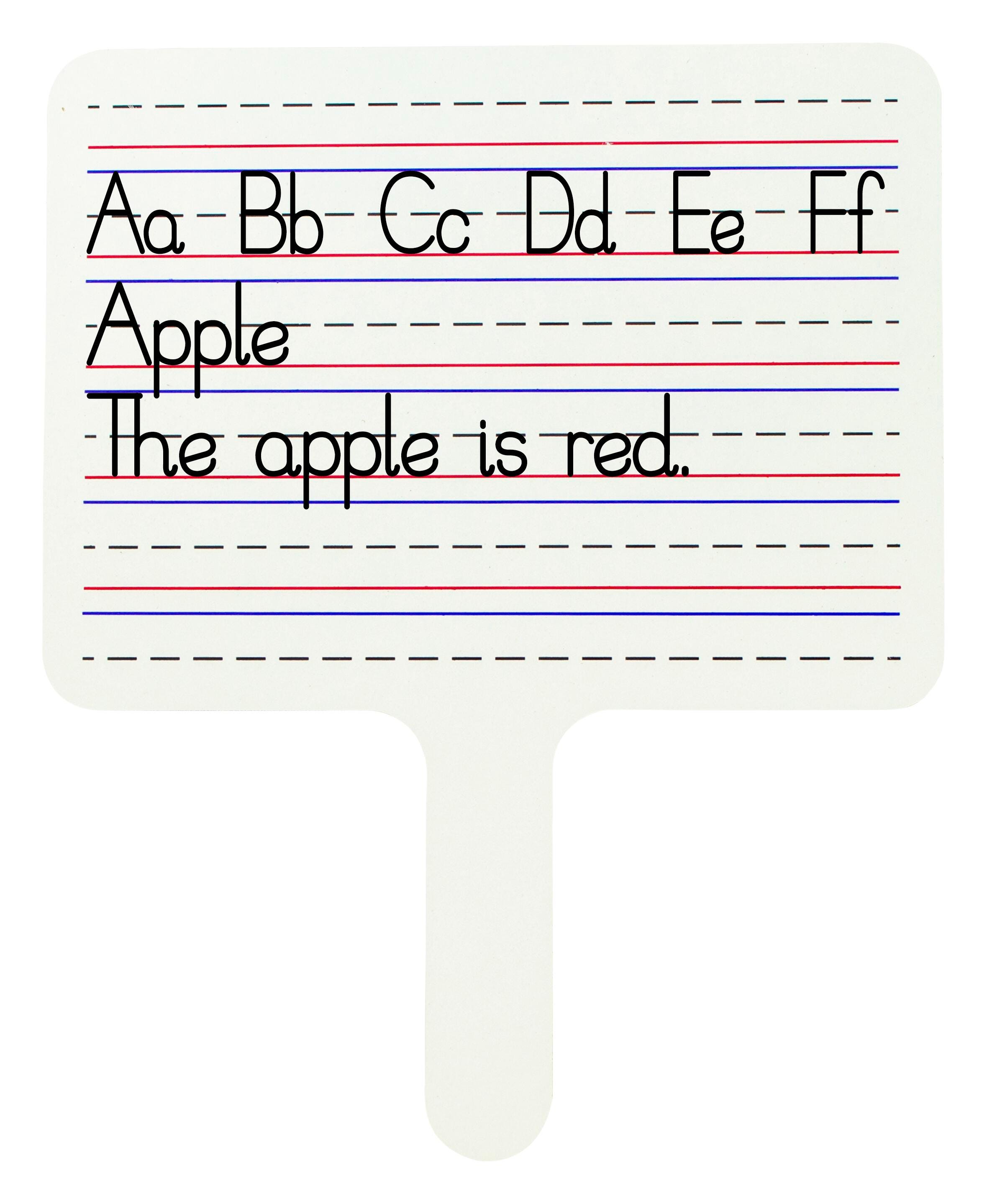 The board is rigid to allow students to practice their skills away from the desk or table. One side of the board is lined for practicing handwriting skills, while the other side is blank to allow free learning, drawing, math practice, etc.Use with a low-odor dry erase marker or dry erase crayon (not included).Features