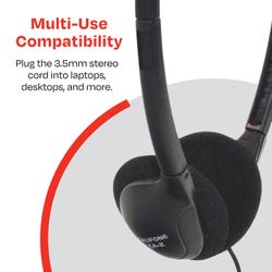 Califone CA-2 Lightweight Headphones are classic on-ear headphones that deliver clear sound and adjustability that make them ideal for students. Made with a simple design, these earphones do the job whether you’re using them at school, work, or home. Each headphone has on-ear noise-reducing earcups made of foam to help diminish exterior sounds. The headband is flexible, adjusts to fit most student sizes, and features recessed wiring. Made for all ages, the durable 5-1/2 foot cord can reach the back of computers and other devices. A 3.5mm stereo plug is compatible with tablets, smartphones, Chromebooks, laptops, desktops, PCs, and Macs. These basic headphones are backed by a 90-day warranty.Features