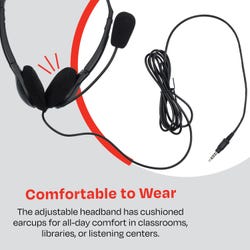 Califone 3065AVT Lightweight Headset with Gooseneck Microphone is a comfortable and adjustable headphone featuring a flexible mic. Made with a classic design, these headphones do the job whether you’re using them at school, work, or home. The omnidirectional gooseneck microphone can be bent as needed, features a windshield, and can be folded up when not in use. An easily adjustable headband and on-ear cushions sit comfortably even with prolonged use. Made for all ages, the permanently attached 3-foot cord has a reinforced connection and 3.5mm stereo plug. This classic headset is compatible with Windows and Mac, desktop computers, and laptops. Our black headset is backed by a 90-day warranty.Features