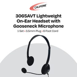 Califone 3065AVT Lightweight Headset with Gooseneck Microphone, 3.5mm Plug, Black