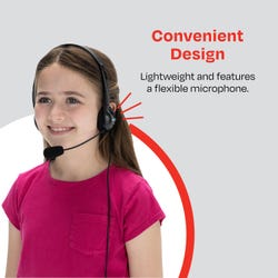 Amp up learning and fun with the basic headphone and mic set for mobile distance learning, gaming, podcasting, and more. Connects to your device using a 3.5mm plug.