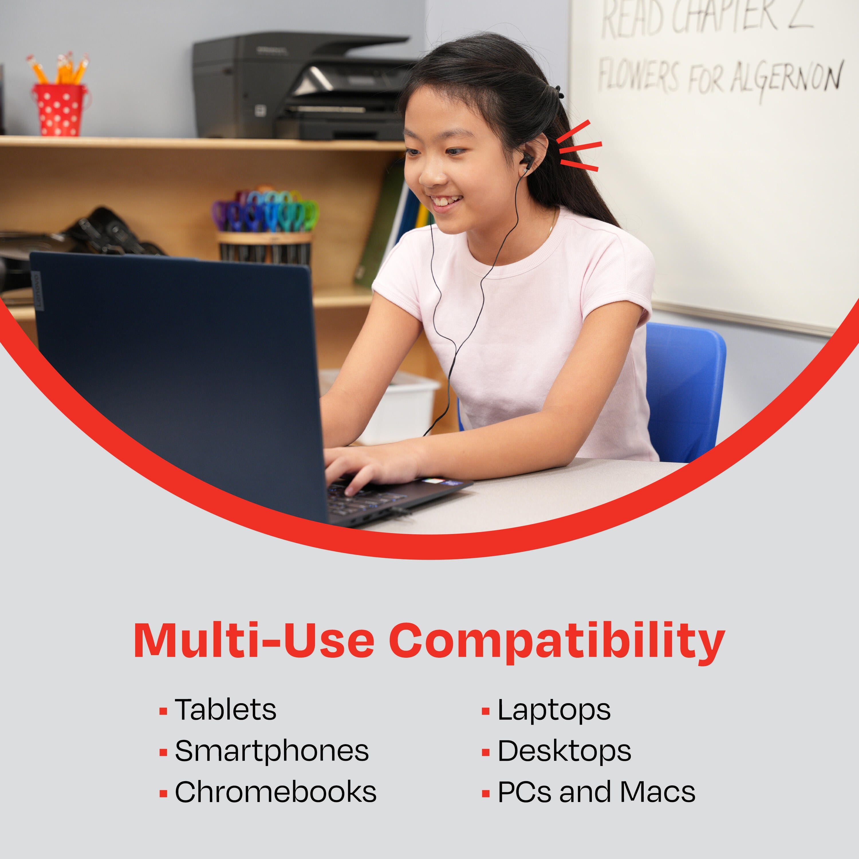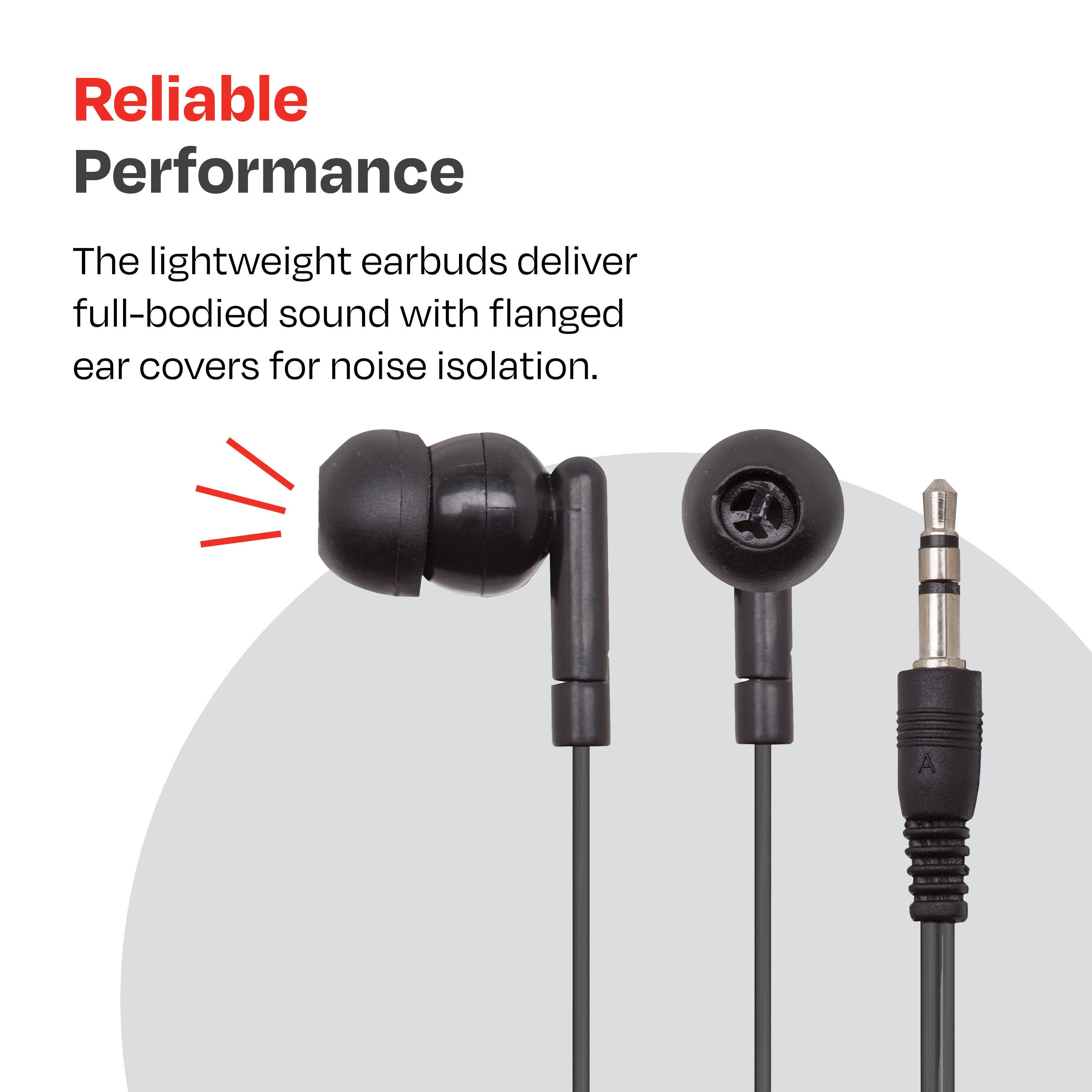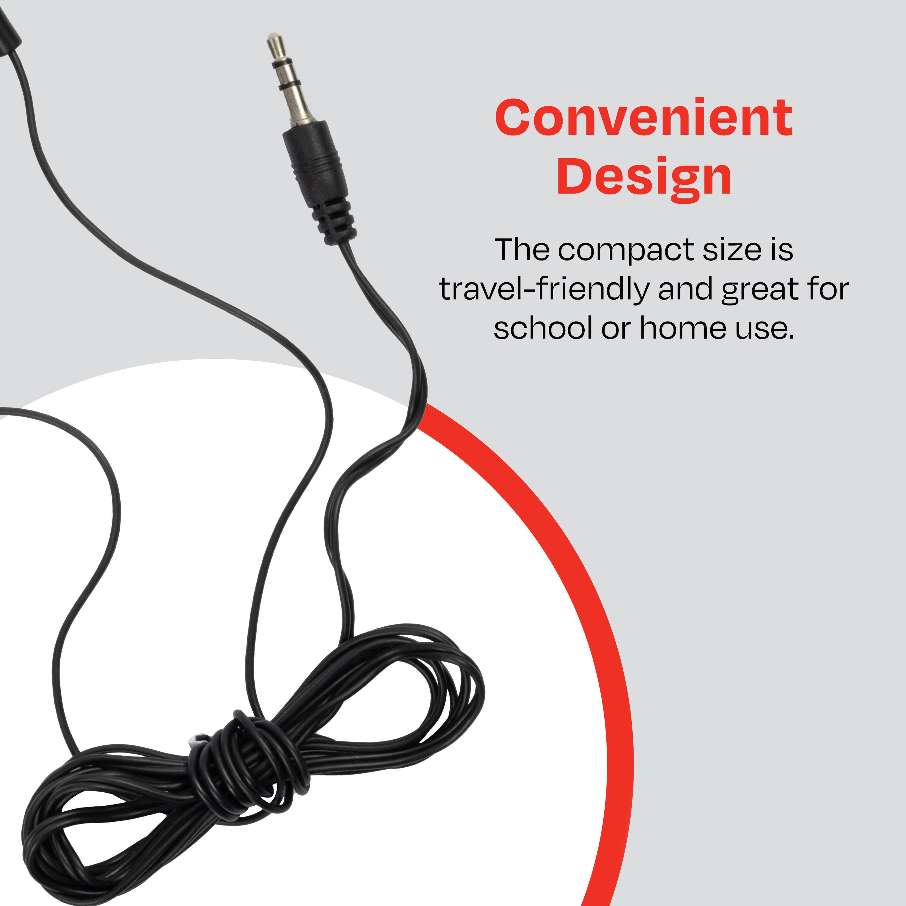 • Versatile travel or classroom earbuds with 3.5 mm stereo plug for desktops, laptops, and tablets