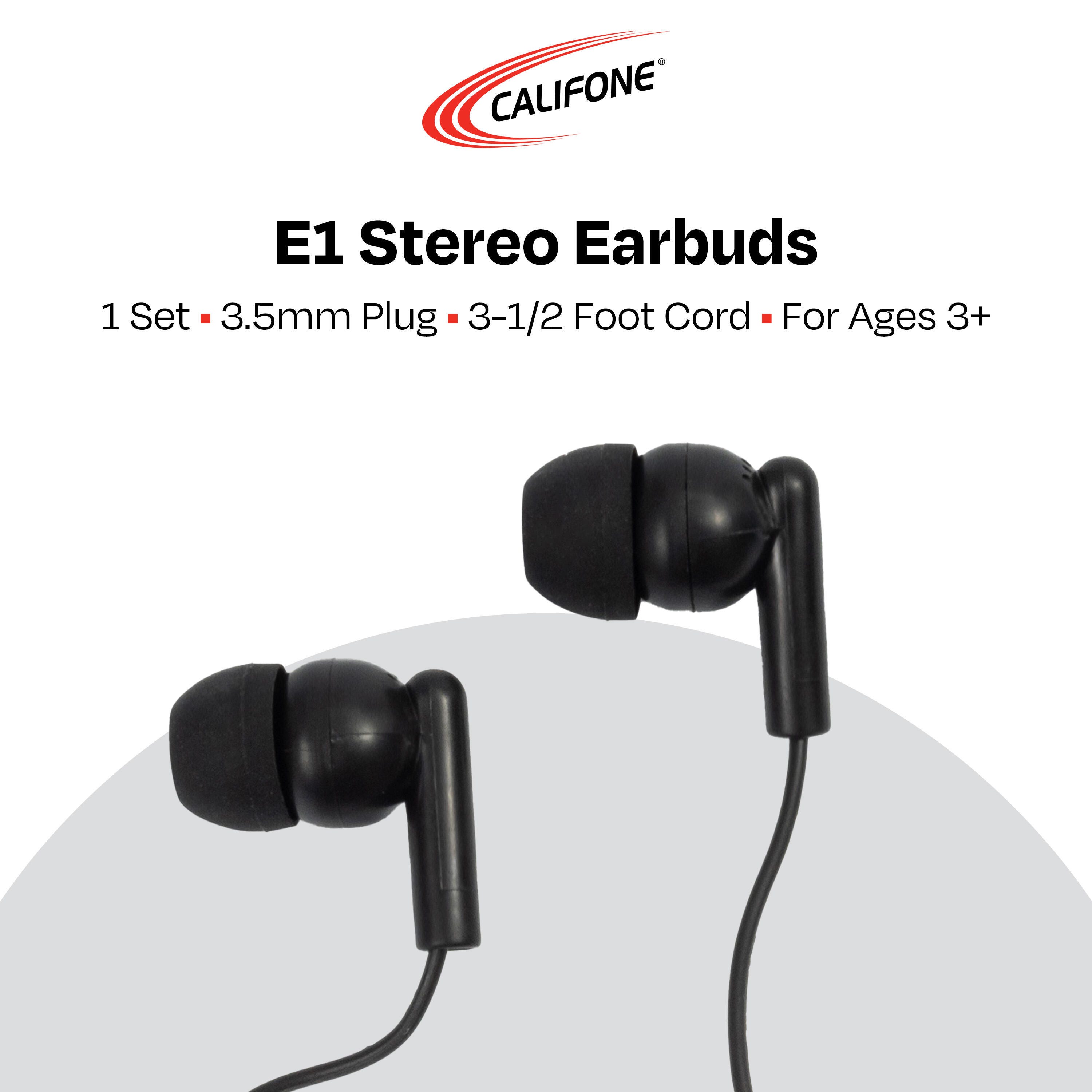 • Califone E1 Stereo Earbuds, 3.5mm Plug, Black