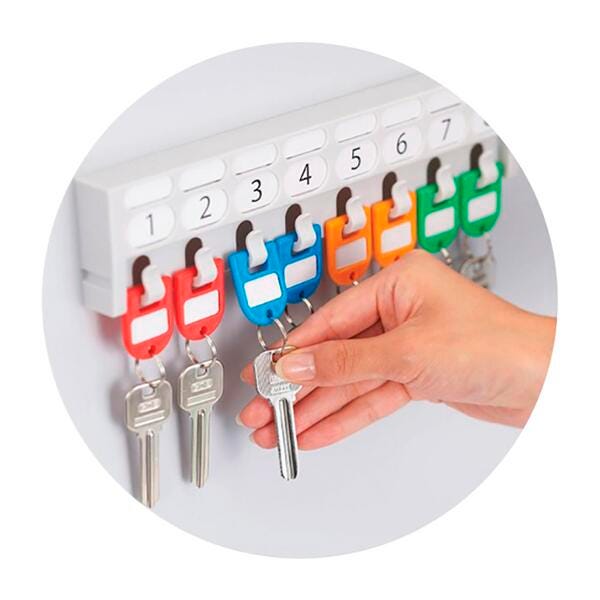 Key tags feature a tough, plastic construction for a durable option to keep your keys organized. Included split ring allows you to quickly attach to keys and hang up in a key cabinet (sold separately). Label window provides plenty of space to write down information.