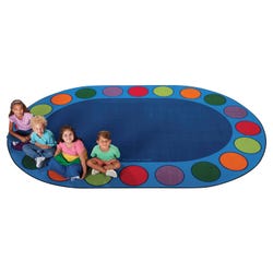 It's easy to find a spot to sit on this Seating Circles Circletime Carpet by Carpets for Kids. This oval carpet lends a space for every child to sit, making for a more organized circle time or storytime. Perfect for spaces where young children gather such as classrooms, playrooms, and preschools. This carpet is plush to support any student who sits, and vibrant to be used as an area rug to decorate your space. This floor covering comes in a variety of sizes. Please select the size that best fits your space when ordering.Features