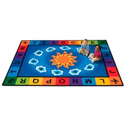 Encourage letter recognition with this vibrant sunshine carpet by Carpets for Kids. Sunny Day Learn and Play Carpet is perfect for early learners learning ABCs and 123s. Rectangle rug available in several sizes.