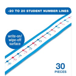 The -20 to 20 Student Number Lines are color coded to make it easy for students to recognize odd and even numbers. Each set of student number lines includes 30 number lines that measure 22 x 1-1/2 inches each. They also feature a write-on/wipe-away surface to make it easy for students to use over and over again! Student number lines are the perfect hands-on tool for reinforcing mathematical concepts such as counting, identifying number patterns, partitioning numbers, comparing numbers, and building number sense. Ideal for Grades K-3.Includes: