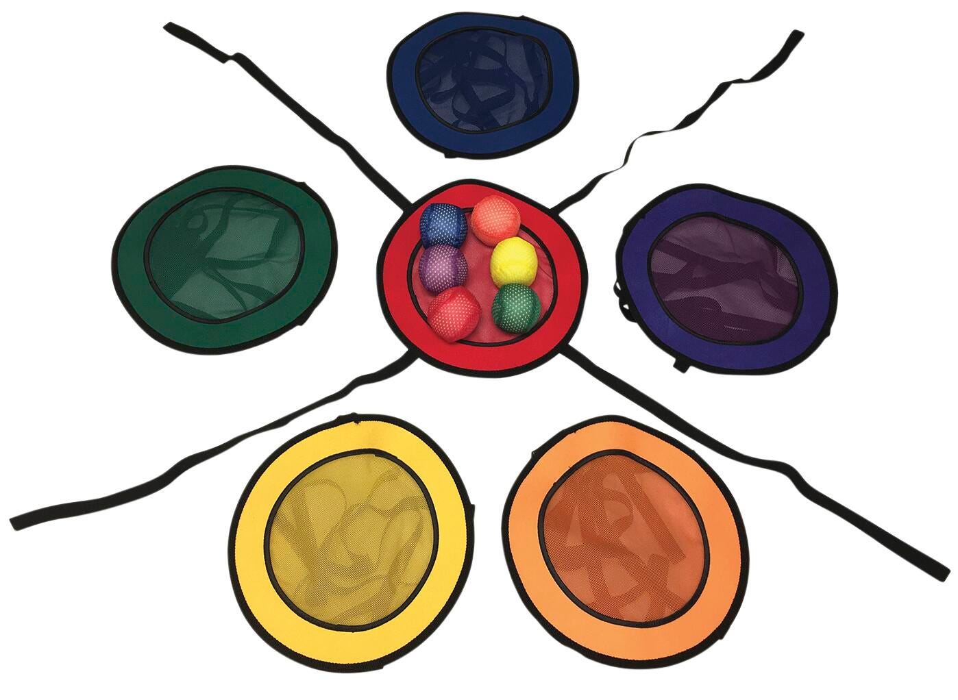 Teamwork is a must for this fun activity. Participants must work together to move the included ball down the parachute chain and back without dropping it on the ground. Set includes six 13.5 inch diameter parachute bands (each with 4 straps) and one inflatable ball with nylon cover.Includes: