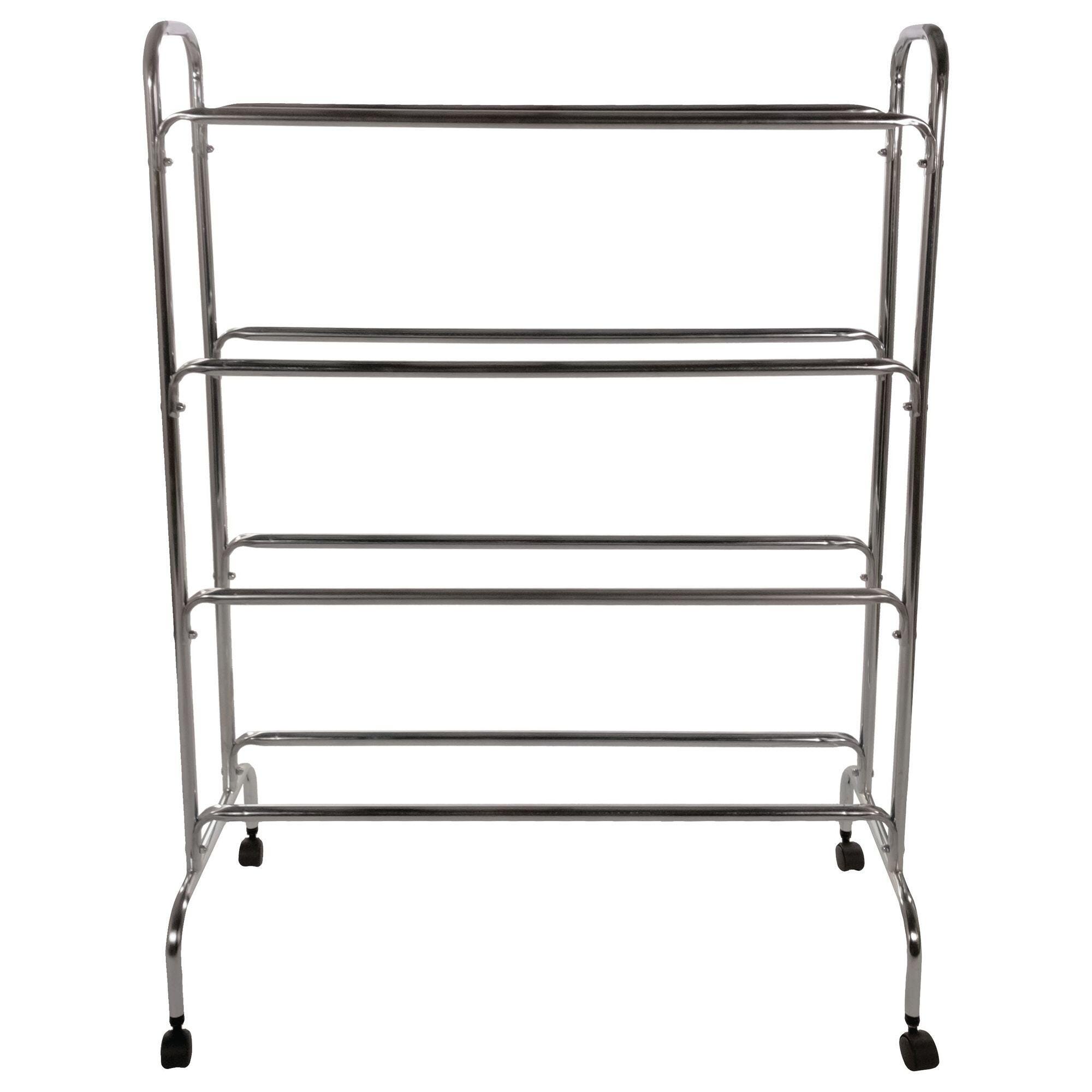 Easily store and transport athletic equipment with this Powder Coated Ball Rack from Champion Sports. This handy ready is designed to hold all types of balls and accomodates up to 16 basketballs, with four balls on each of the four tiers. The portable rack features durable frame of 1-inch steel tubing and 2-inch multidirectional casters for easy steering. Full cart measures 41 L x 17 W x 53 H inches. Assembly required. Please note: rack color may vary from what is shown.