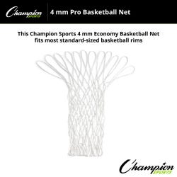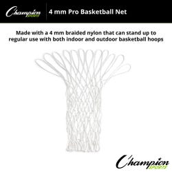 The perfect shot starts with practice and ends with a swish. This Basketball Net by Champion Sports adds the swish to your shot and is designed to withstand tough competitive play. The all-white design lends a classic and practical look to your basketball court, whether during high-stakes competition or a pick-up game at the recreational center. The net is made of a 4mm double-braided nylon and can be used both indoors and outdoors.Features