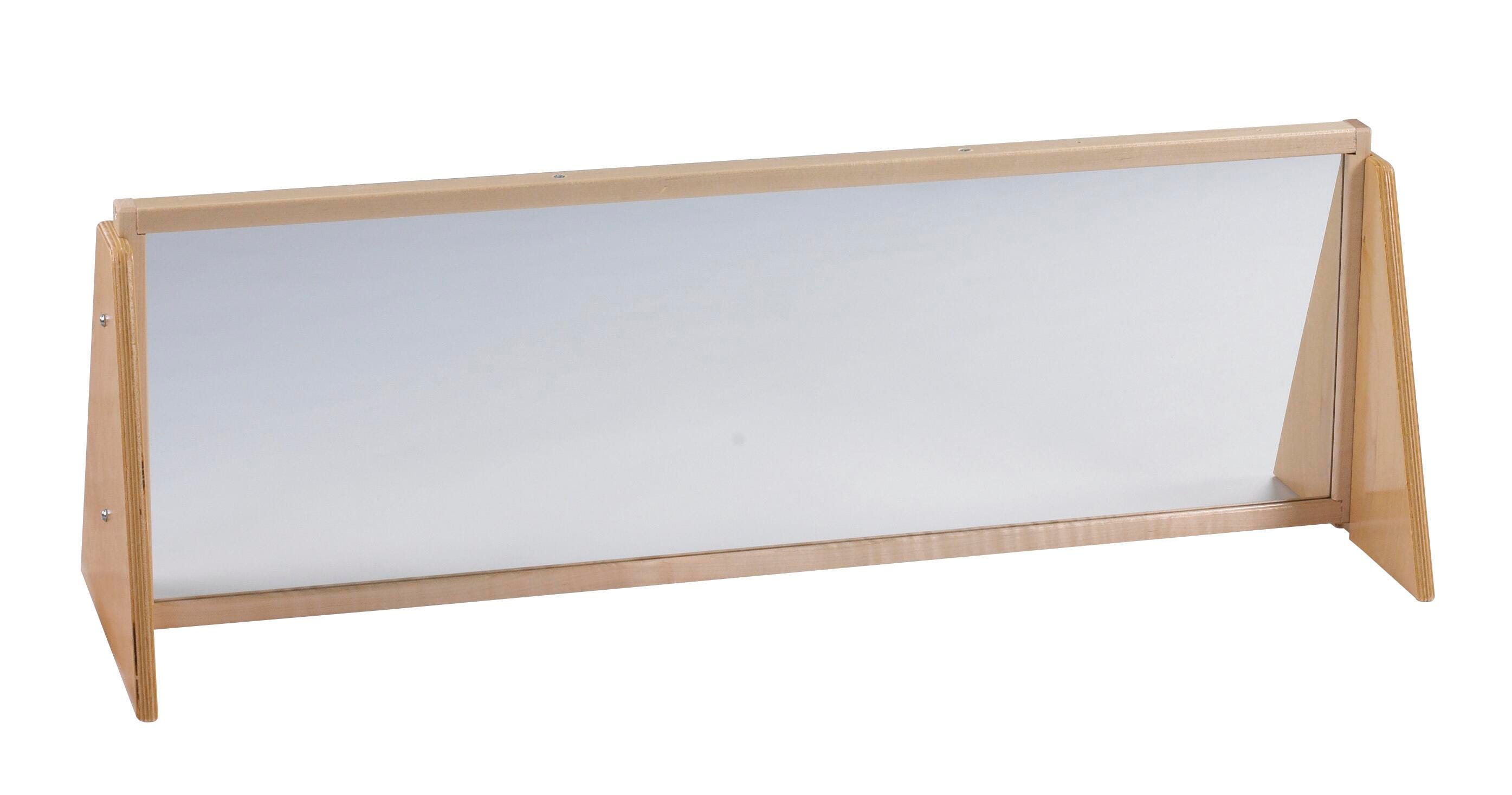 The Childcraft® 2-Position Acrylic Mirror is designed to support early development, self-identification, and creative play in classrooms, childcare centers, and home environments. Built with a durable maple frame, this shatterproof mirror can be positioned horizontally for tummy time and self-exploration, or vertically for dress-up activities and dramatic play. The sturdy screw-block reinforced top panels and dado construction ensure long-lasting durability, and an eco-friendly, stain-resistant UV acrylic finish provides a smooth, cleanable surface. This acrylic sheet mirror measures 13-1/4 W x 11-3/4 D x 36-1/2 H inches.