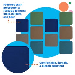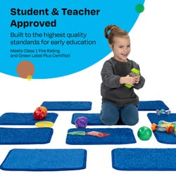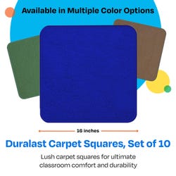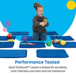 Childcraft® Duralast Carpet Squares are 16 x 16 inch carpets that offer children their own comfortable space for learning. They’re an ideal solution for classrooms, playrooms, or any space where young learners gather. This set of 10 floor seats is a great alternative to traditional rugs or carpets. Each sitting mat provides soft, personal space that can withstand the demands of everyday classroom activities. Each Childcraft carpet is performance tested for durability, color fastness, and stain and soil resistance for quality you can trust. Each floor mat measures 16 x 16 inches; this set comes with 10 seating squares.