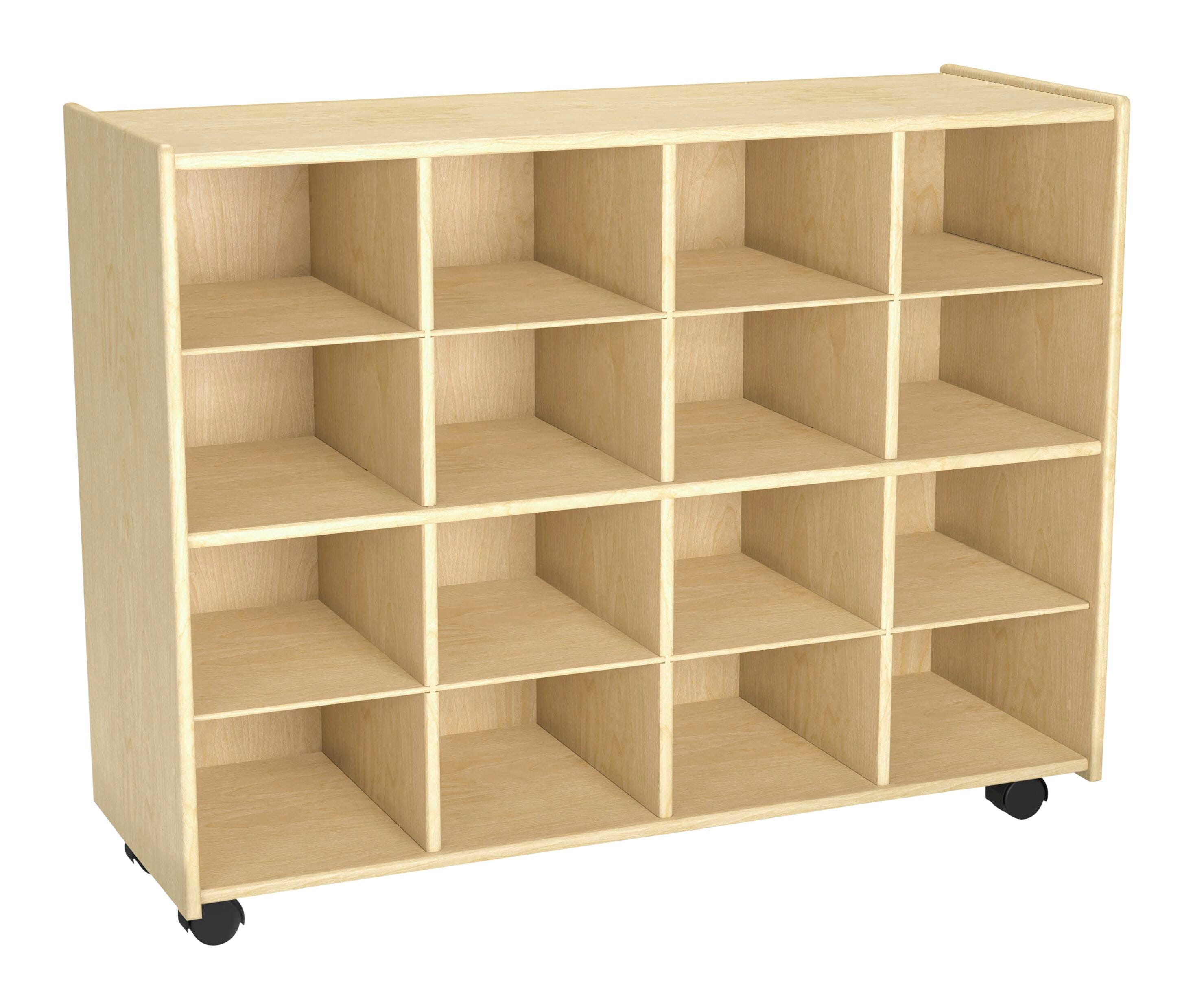 Childcraft Mobile Cubby Unit With Locking Casters, 16-Bin Capacity, 38-5/16 x 14-1/4 x 30 Inches