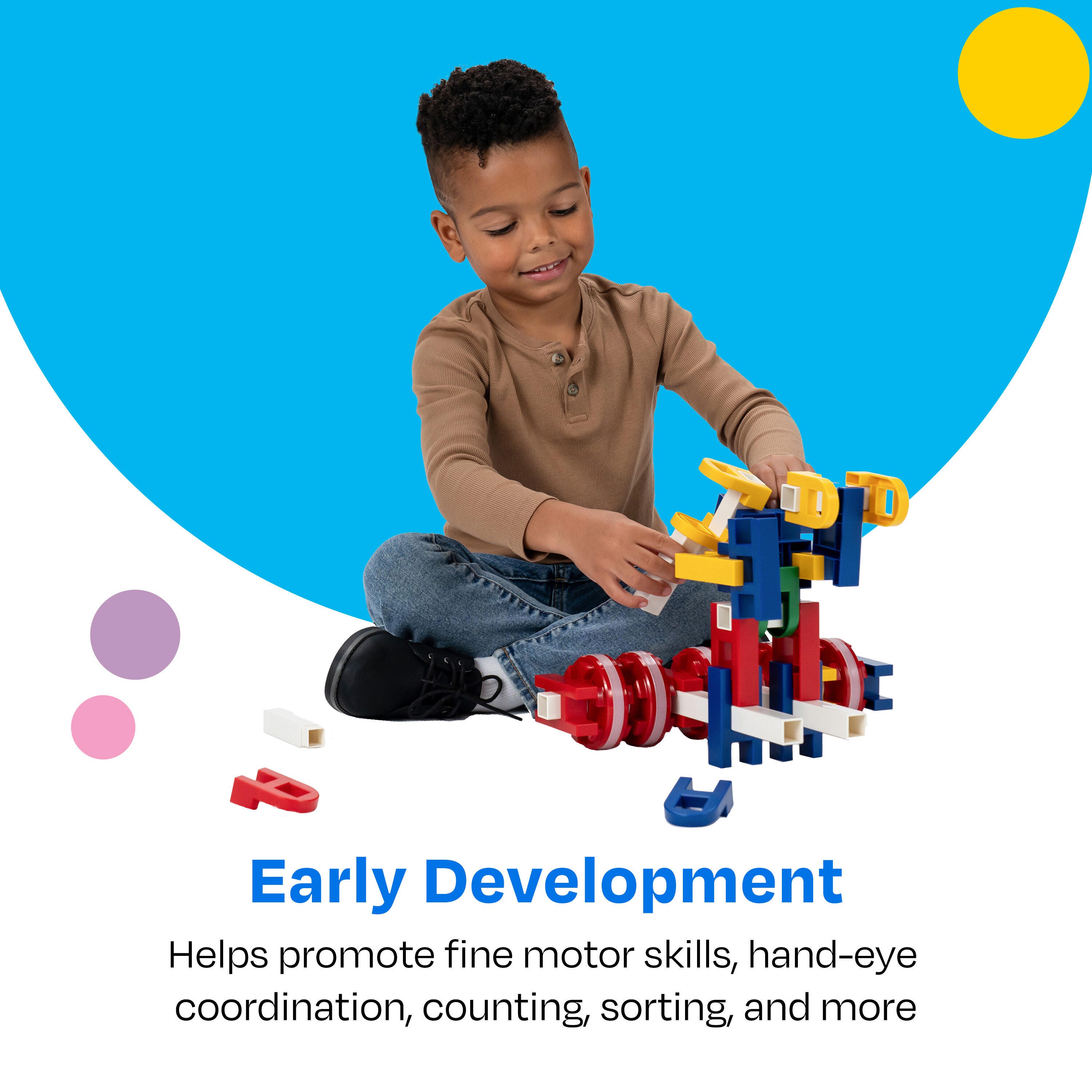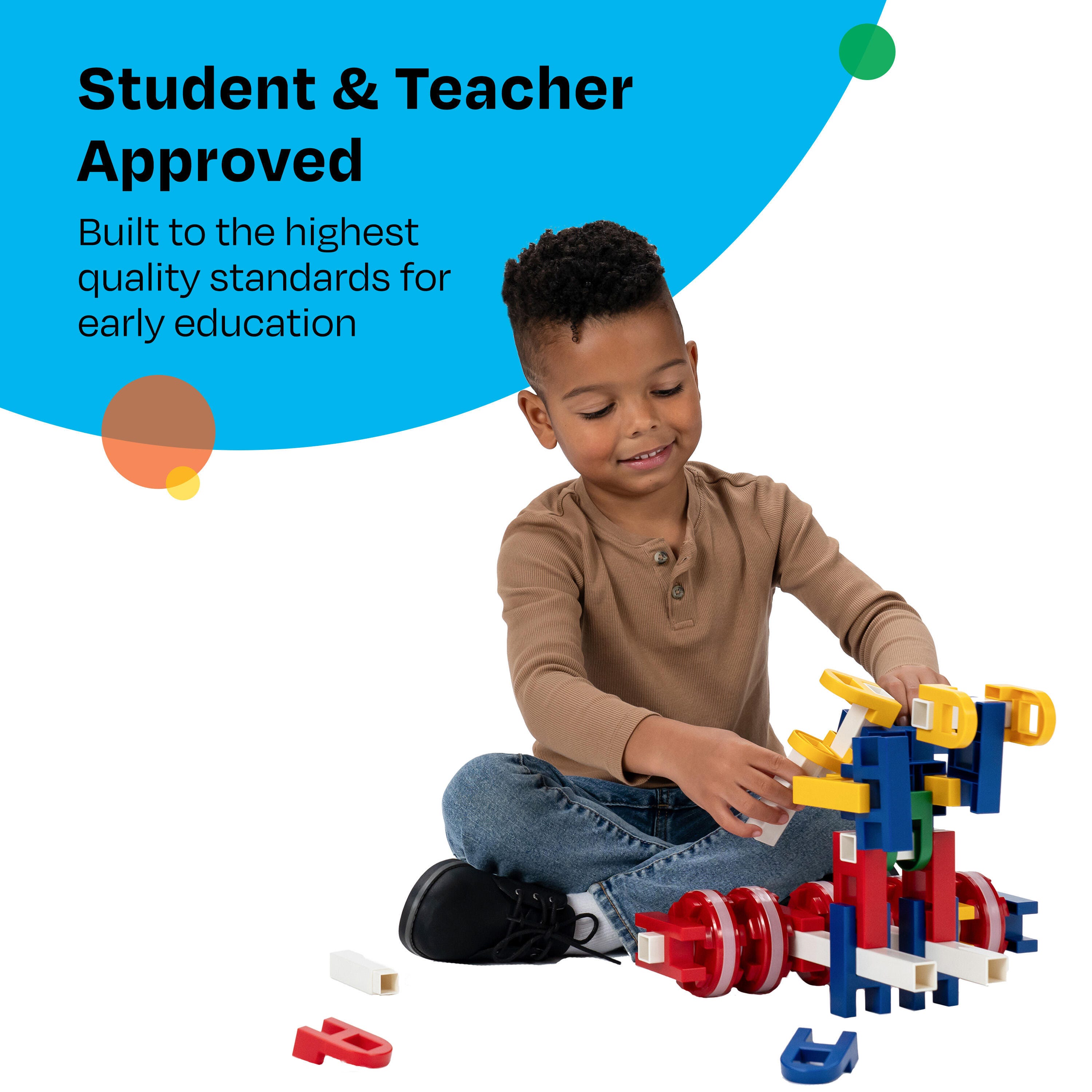 - Interlocking design makes it easy for young learners to connect pieces and explore different structures
