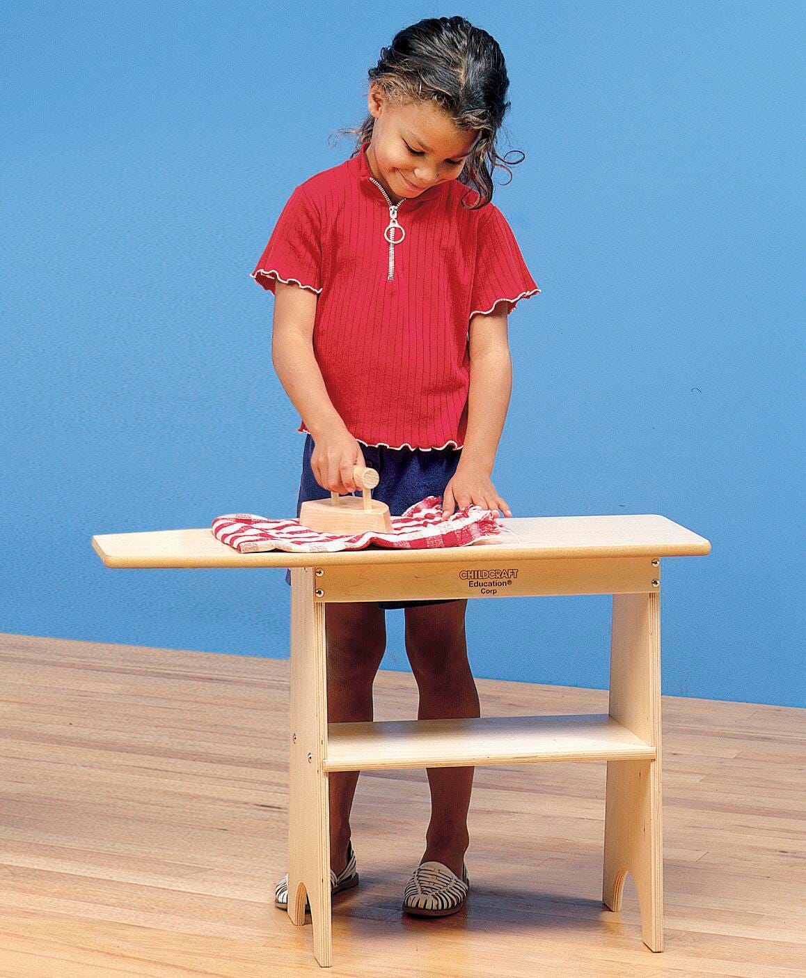 - Classic wooden ironing board and iron set enhances dramatic play and encourages role-playing