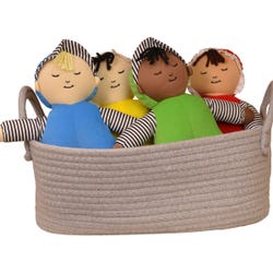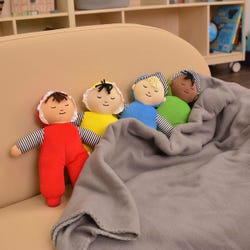 This adorable sleeping fabric baby doll creates a more welcoming care center, playroom, or early childhood space through representation. Anywhere that welcomes young ones from all backgrounds will benefit from a fabric doll that represents their background. Made easy to wash and dry for dynamic care spaces. Measures 10 L x 9 W x 2 H inches.Features
