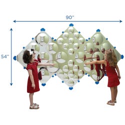 Give your wall a spectacular look! Small and large convex mirror bubbles invite curious children to spy themselves and their environment in new ways. Watch images multiply and change shape as children play. This mirror is a focal point for visual perceptual experiences and is made of shatter resistant acrylic. Mounting hardware not included. Dimensions: 90 in L x 54 in W.Features