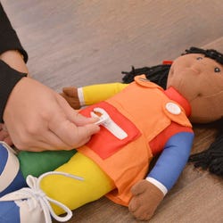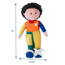 Teach children basic clothing skills with these adorable Learn to Dress Dolls by Children's Factory. Each doll measures approximately 15 inches tall with embroidered faces. Features five dexterity areas to practice with buttons, zippers, shoelaces, snaps, and hook and loop. Designed to be machine washable and dryable. Ages 3 and up.Features