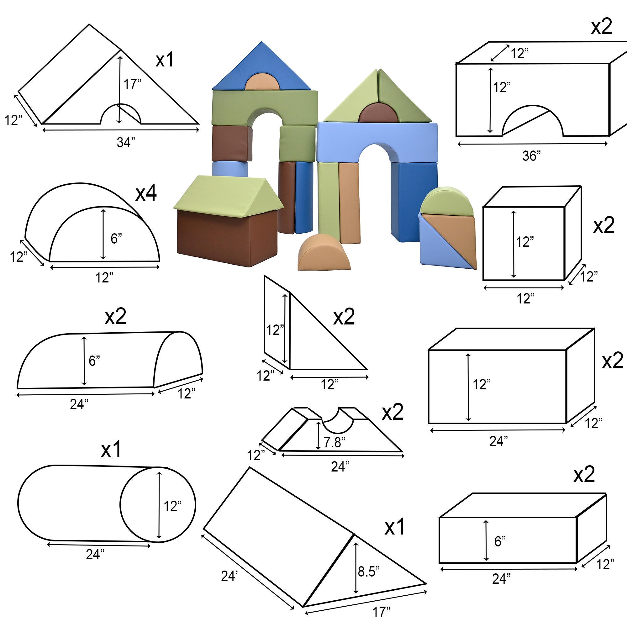 • Children's Factory Module Blocks, 12 Inches, 21 Pieces