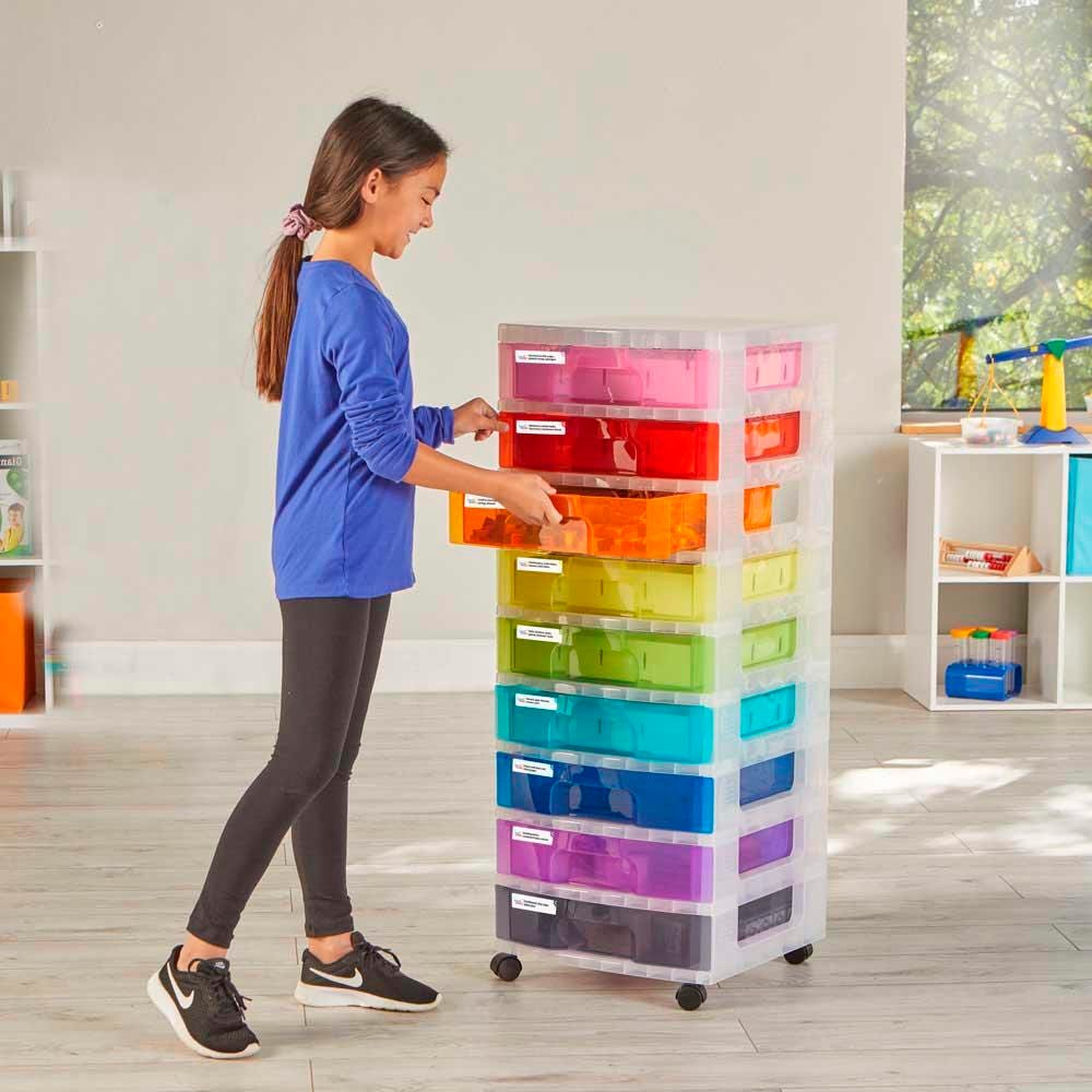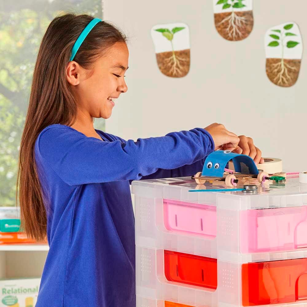 The Classroom Makerspace Cart includes everything needed to set up a makerspace in a grade 3-5 classroom, STEM lab or library. Easy rolling and durable cart comes already fully loaded with a variety of unique components and tools perfectly organized to be easily accessible to elementary school students. Also included are 36 Getting Started Activity Cards featuring open-ended, teacher-developed activities that span a variety of STEM concepts and appeal to children’s unique interests and learning styles and a teacher's guide. Activities are NGSS-aligned and include visual prompts, tips and more advanced challenges. Encourage open-ended exploration and meet the diverse learning styles of students with everything you need in one place.Features