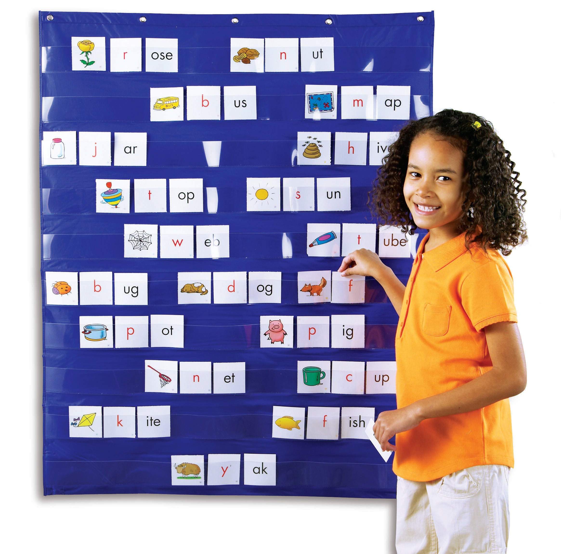 Learning Resources Standard Pocket Chart has 10 clear display pockets, one reverse side storage pocket, and activity guide with blackline masters. Vinyl chart measures 33-1/2 W x 42 H inches. Cards displayed are not included.Features
