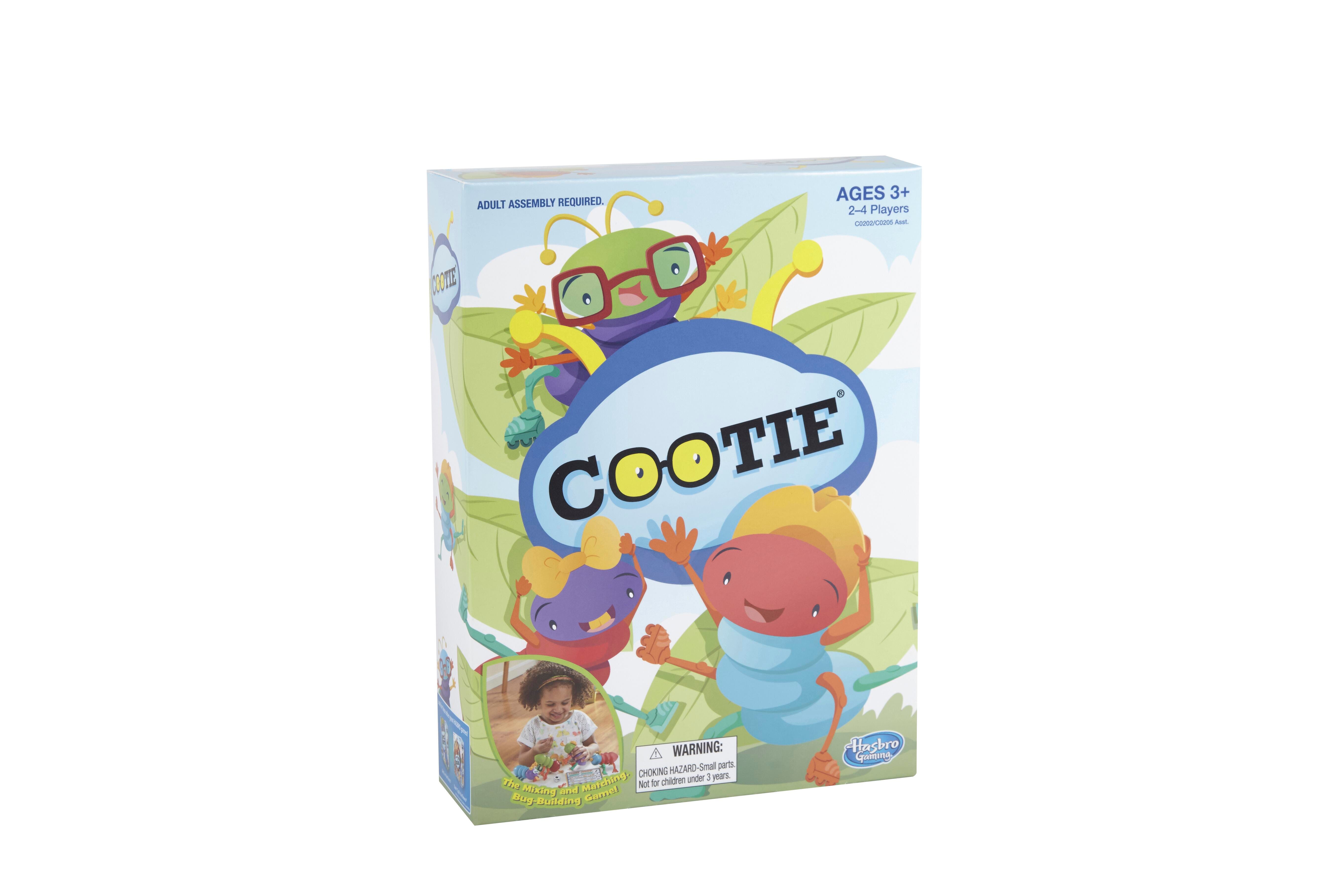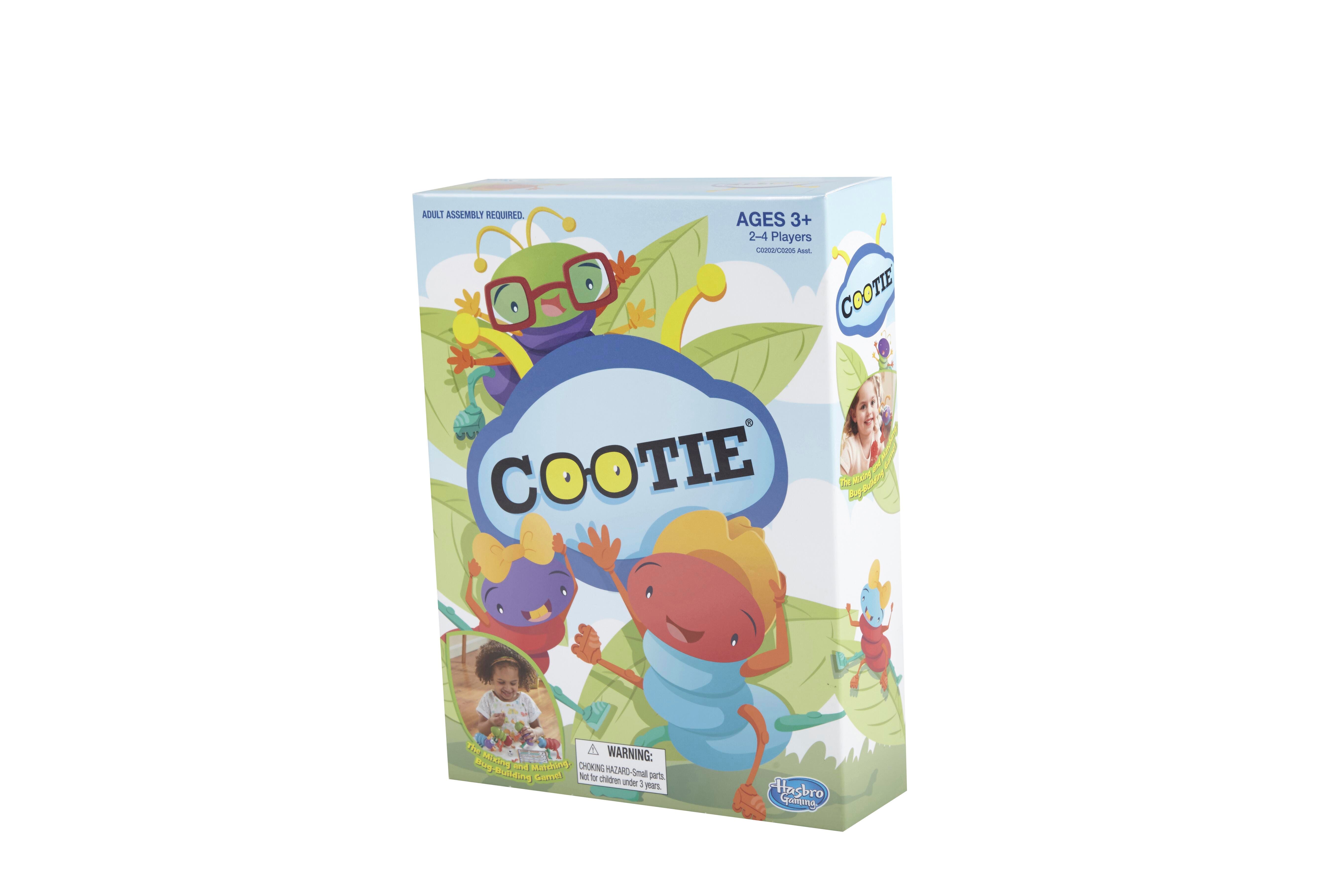 In the Cootie game, players roll the die and race to be the first to create their own Cootie bug using the unique bodies, heads, eyes, antennae, and legs. For 2 to 4 players. Ages 3 and up.Features