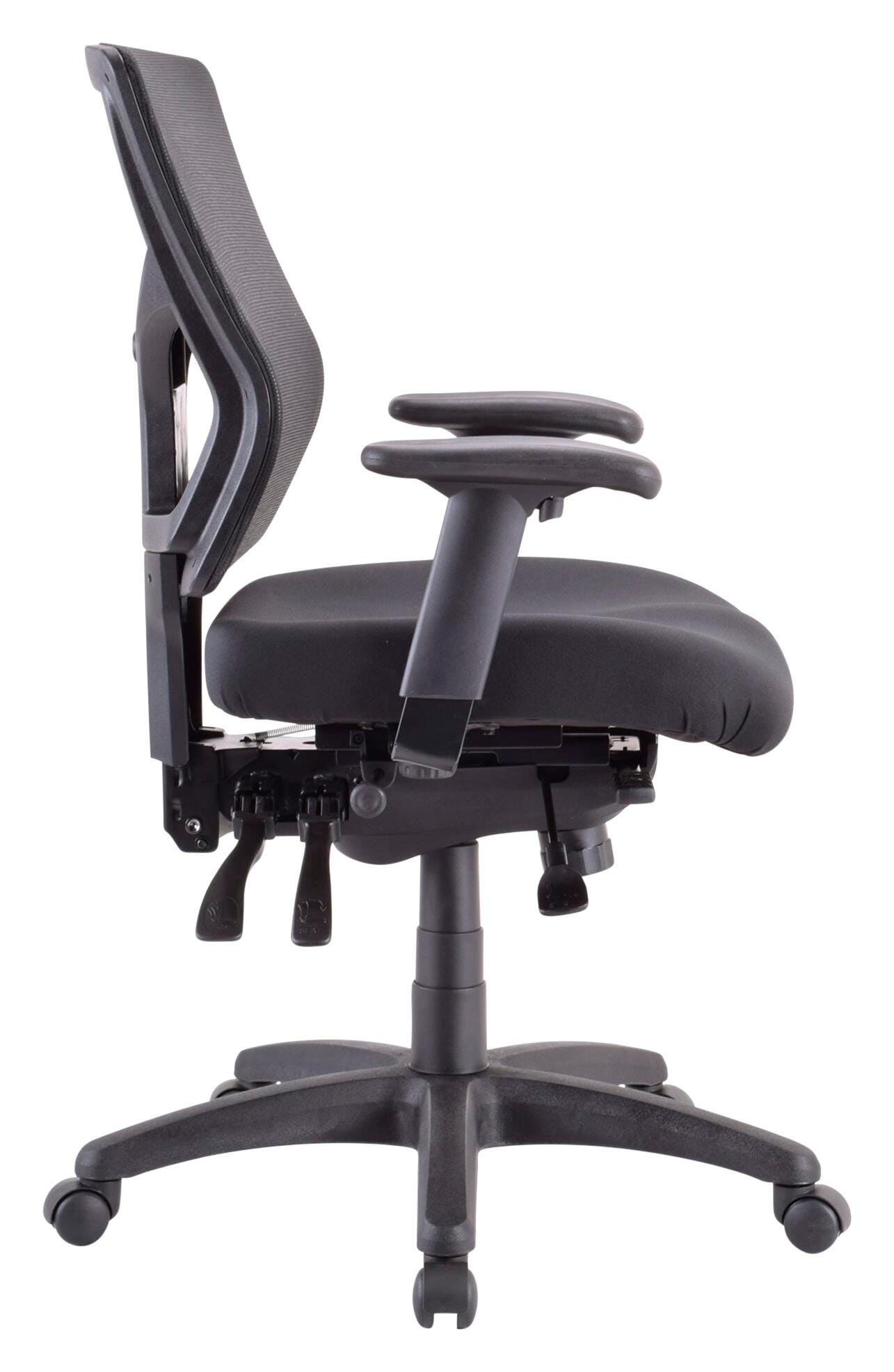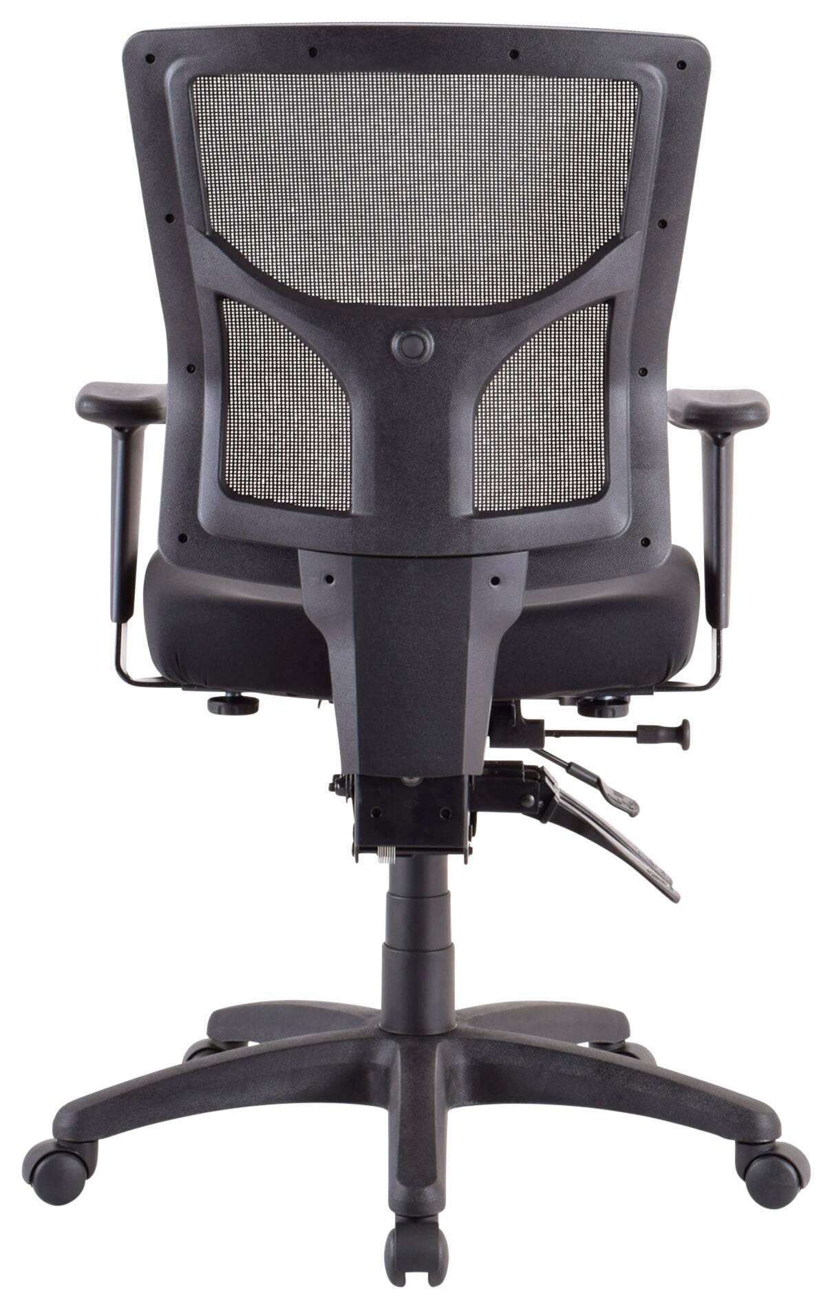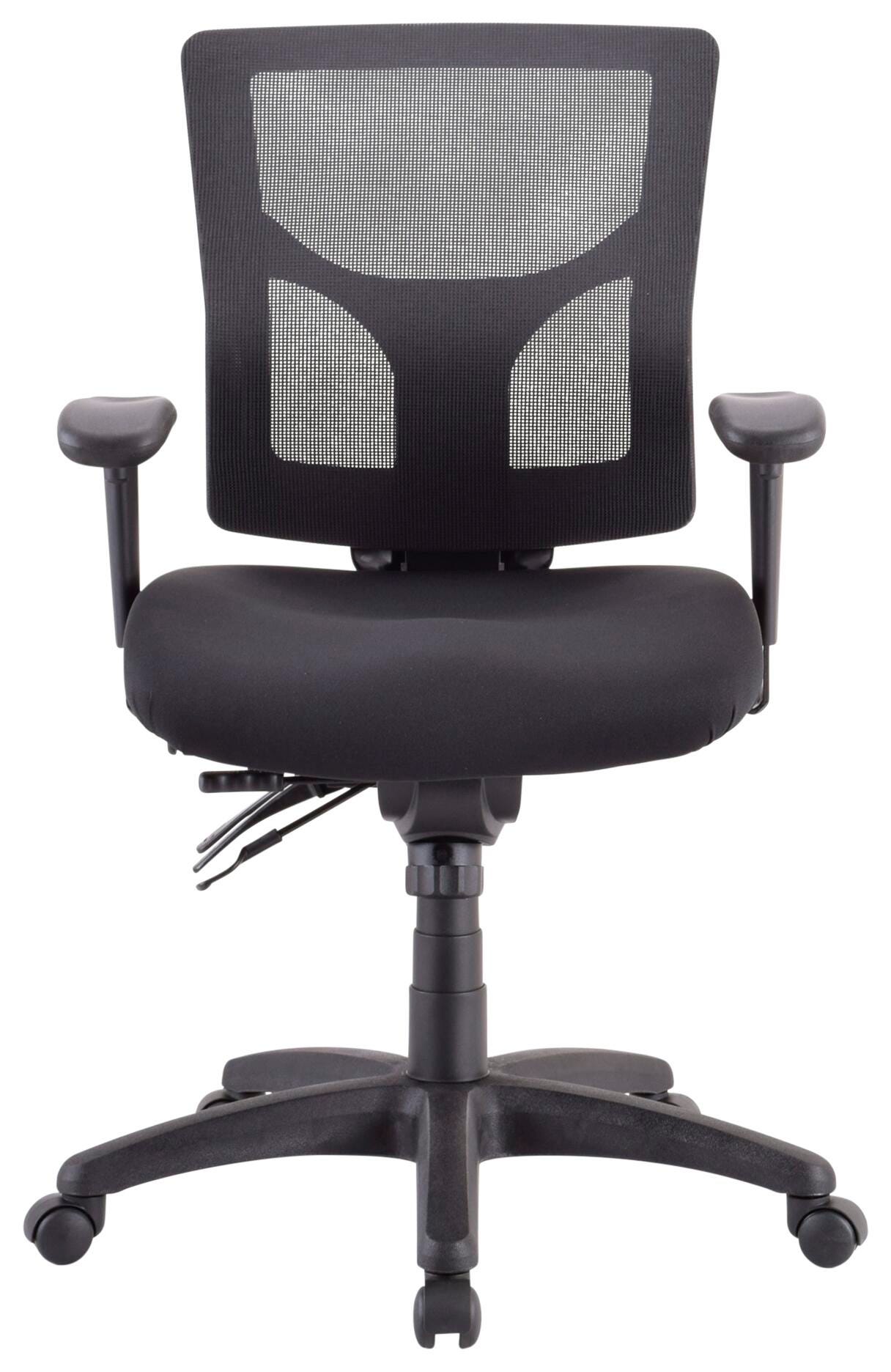 This Executive chair with a mid-back features a mesh back that allows air to flow freely when you're seated to help you stay cool throughout the day. Upholstered seat cushion provides comfortable support through years of use. Lumbar support offers ergonomic support for your lower back to help prevent strain through extended seating. Executive chair also includes a ratchet back, adjustable seat height and depth, adjustable back height, adjustable back angle, adjustable arm width and height, seat slider seat, synchro-tilt, tilt tension, knee-tilt and more.