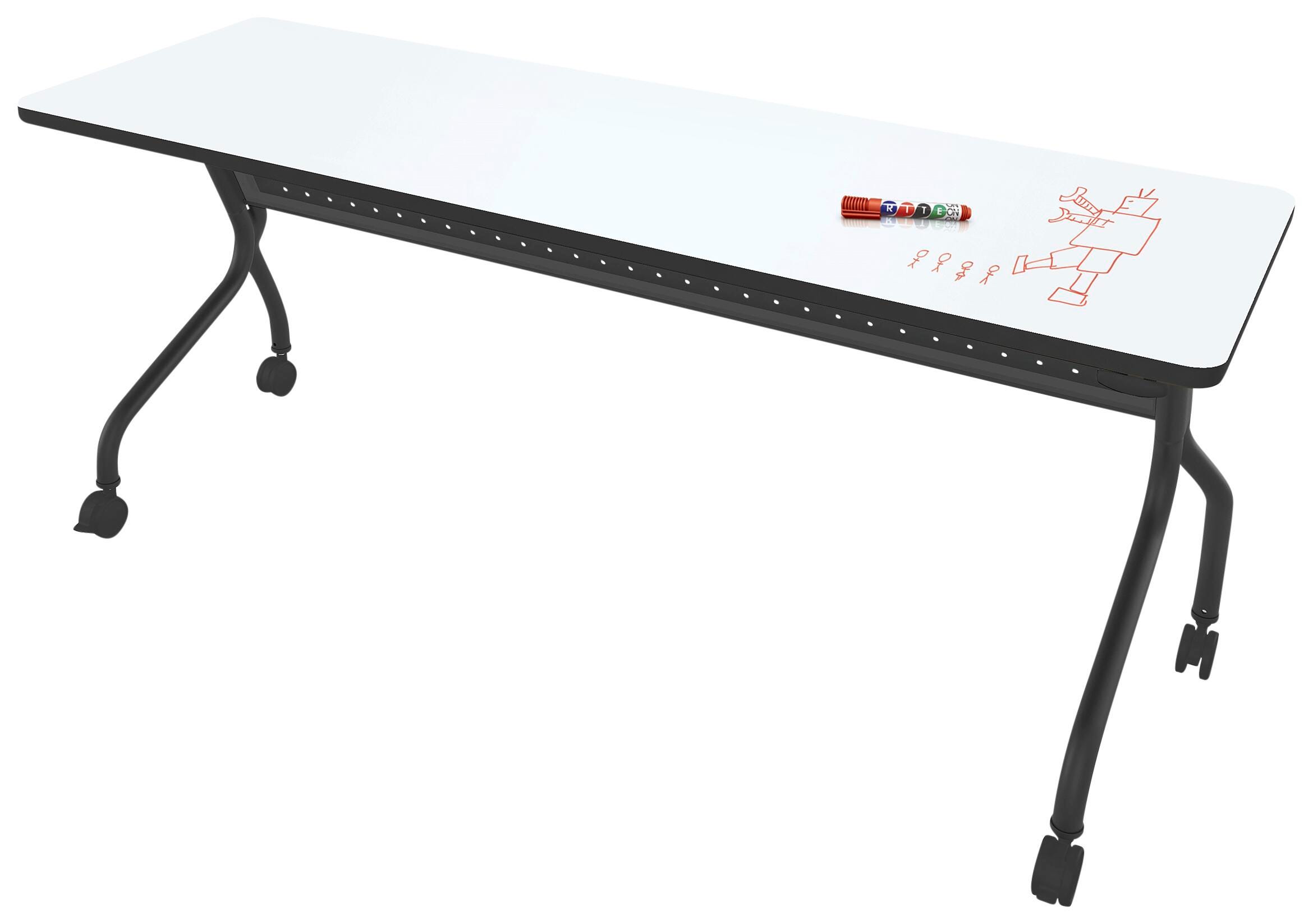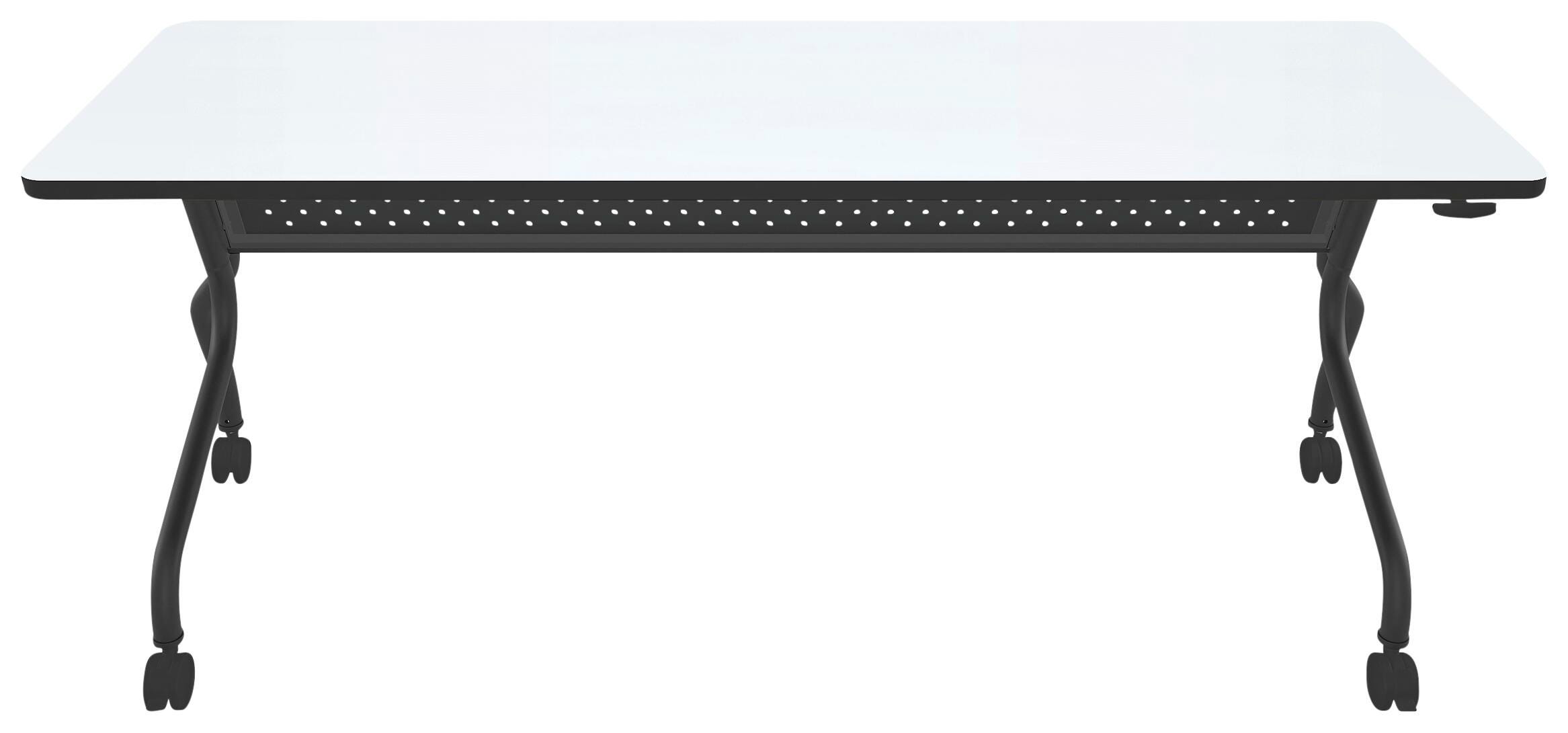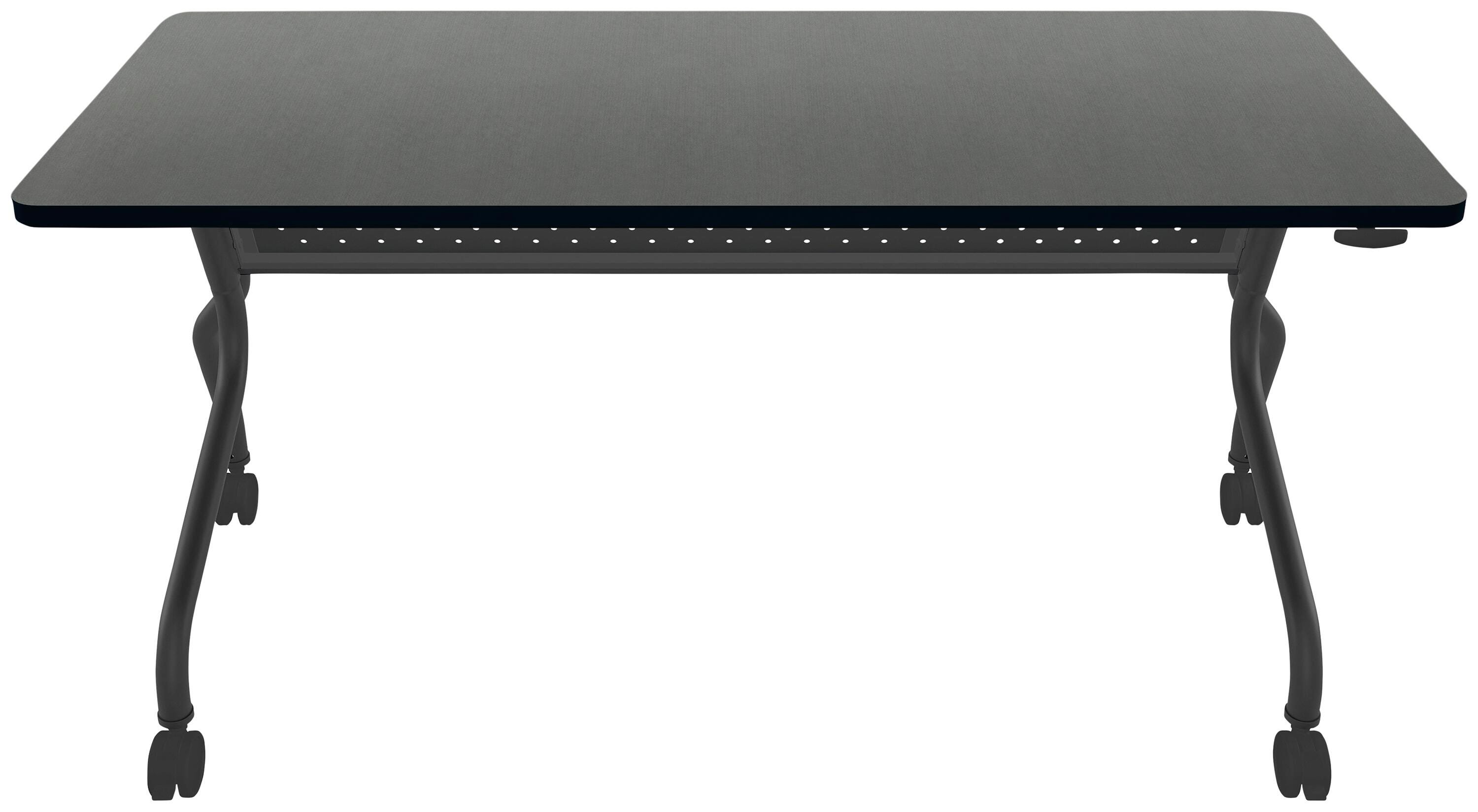 The Classroom Select Flipper Computer Table features a heavy-duty, flip-top mechanism base that allows for easy maintenance and classroom cleaning. The design of the legs allows the tables to nest together to save space during storage. Legs are 2 inch diameter, 18-gauge tubular steel with a black powder coat finish. The base features a 16 inch modesty panel with wire management tray and heavy duty 3 inch twin wheel polyurethane locking casters.