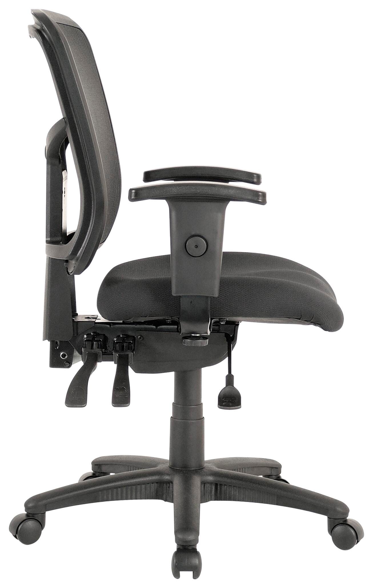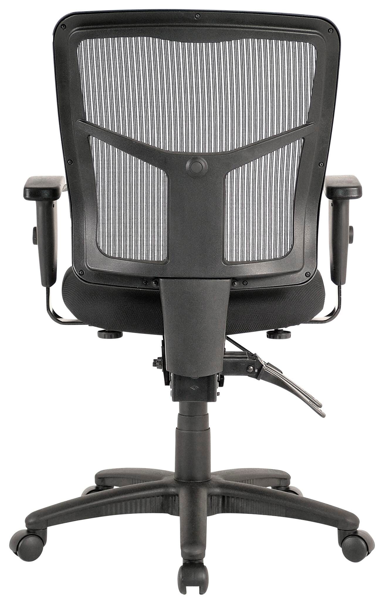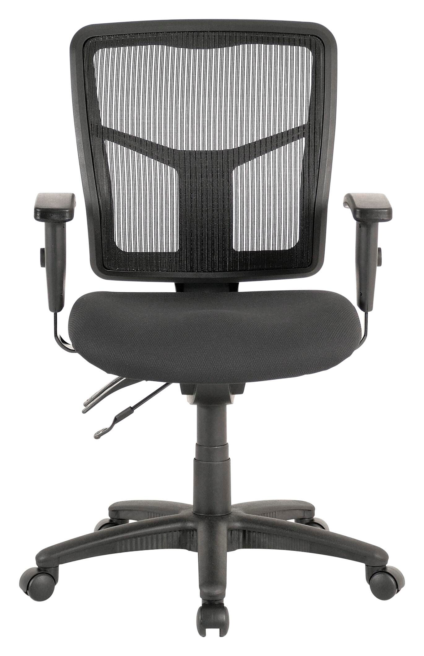The managerial mid-back chair features a mesh back and mesh fabric seat. It was ergonomically designed to match the natural curvature of a person's back. The arms adjust in height and width, and this chair also offers a five-star nylon base, pneumatic seat-height and depth adjustment (17 to 21 inches high from the floor), 360-degree swivel, back-height adjustment, adjustable back angle, center and knee tilt, forward seat tilt and asynchronous three-lever control. Frame and premium seat ship separately. The frame is available in black only.