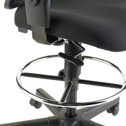 Classroom Select Mid-Back Stool offers ratchet back and a comfortable, breathable mesh back. Mesh is made of high-strength elastic nylon. Ergonomically designed mid-back is perfect for the natural curvature of a person's back. Design also features a cushioned fabric seat and Chrome foot ring to heighten your comfort. Included arms adjust in height (32 x 42-1/2 inches) and in width (24 to 26 inches) to suit your needs. Other functions include pneumatic seat-height adjustment from 25 to 35-2/5 inches, 360-degree swivel and back-height adjustment. 25-1/2 inch diameter, five-star steel base has a polypropylene cap and casters for easy mobility. Seat size is 20 in W x 18-3/4 inch deep. Back measures 20 inch wide (at the widest portion) x 19-3/4 in H. Weight capacity is 250 lbs.Features