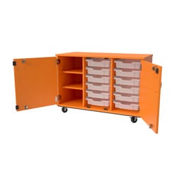 Color meets complete organization! Our Expanse storage tote cabinets are constructed of 3/4 inch particle board with double-sided thermal fused laminate and matching 3mm PVC edge banding. Shelves are double sided HPL with matching 3mm PVC edge banding on front edge and are adjustable. Cabinet has four 3-inch heavy-duty locking casters. Choose from an array of wood grain patterns and exciting solid colors. Tote trays: 3 inch tote trays included and are interchangeable with our Concord, Advocate Series, and Geode Series desks. Fully assembled.Features