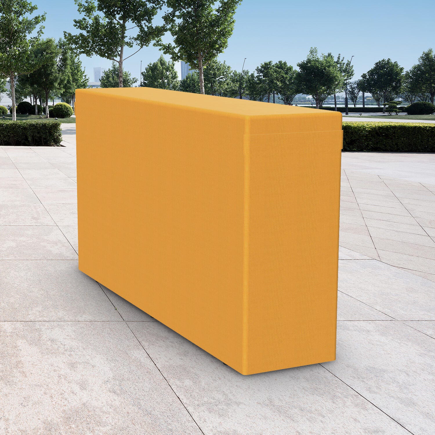 This divider has a cover made with machine washable, soft canvas fabric that's water, mildew, stain, and fade resistant. The foam interior is uniquely designed to withstand outdoor elements. Constructed using UV stable thread. Durable handles and lightweight construction make moving around a breeze. Divider units come with ganging brackets to be used when nesting a bench unit and also come with stabilizer feet for use as a stand-alone piece. Measures 53 W x 12 D x 27-1/2 H inches.Features