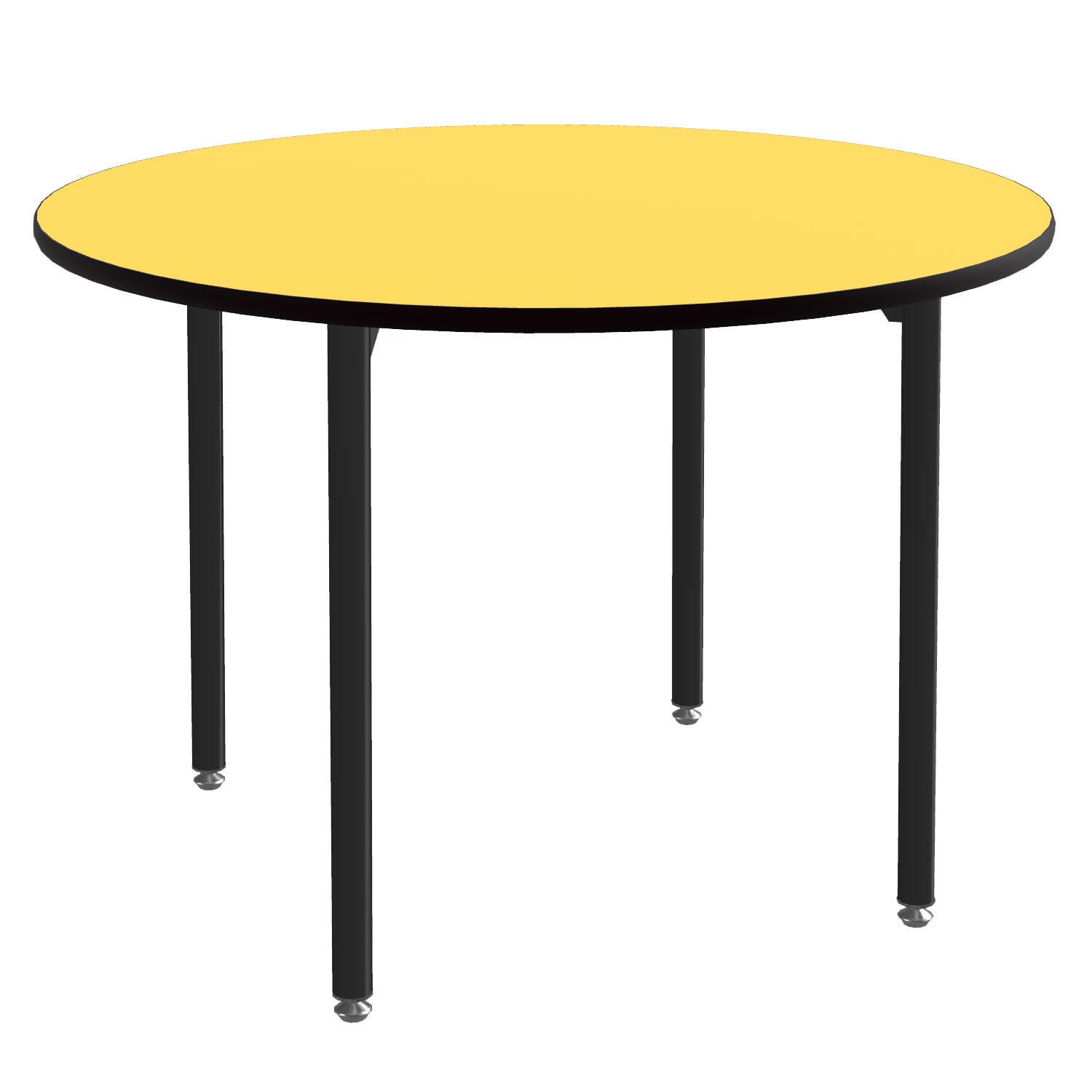Colorful Prima Tables complete a dramatic play area or can offer extra work space in early childhood classrooms.Round table tops are 5/8 inch thick and have black, vinyl edge banding and black steel legs.