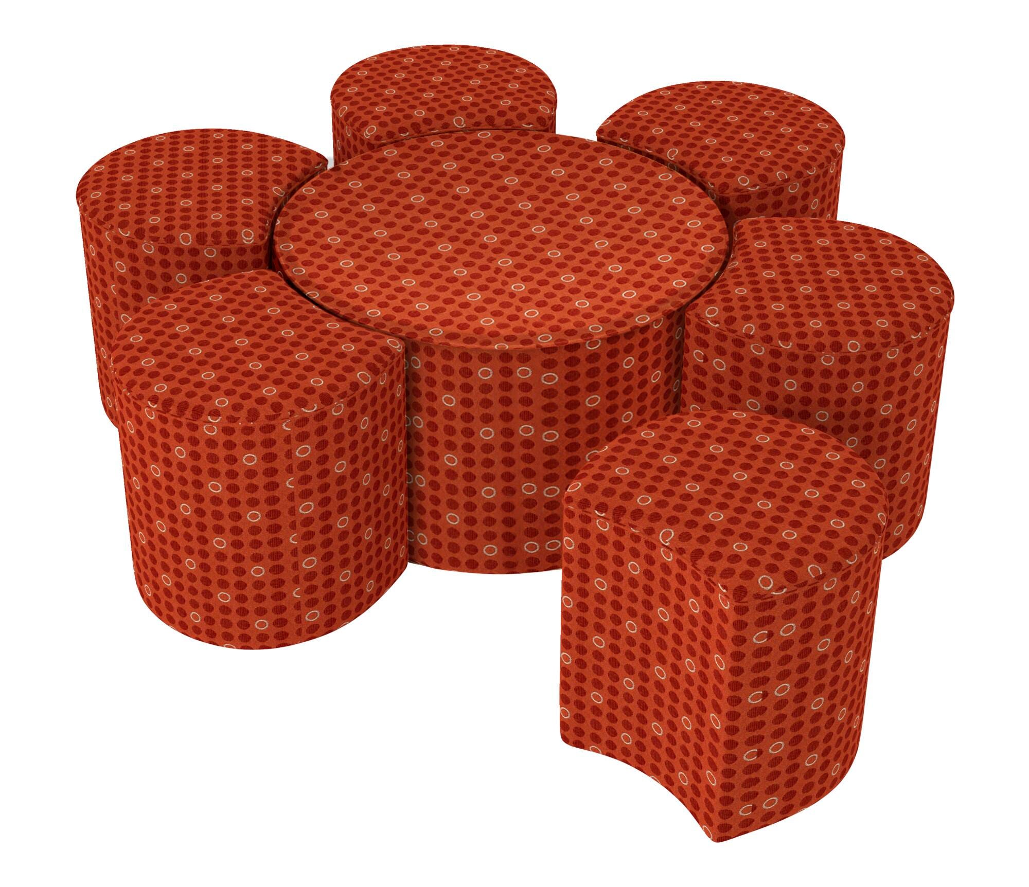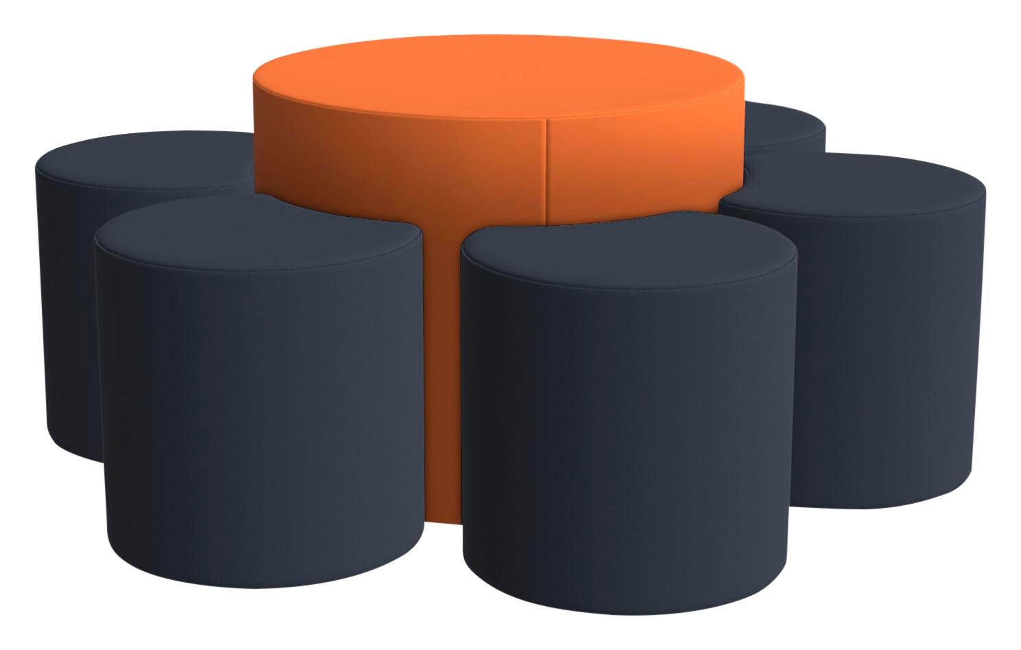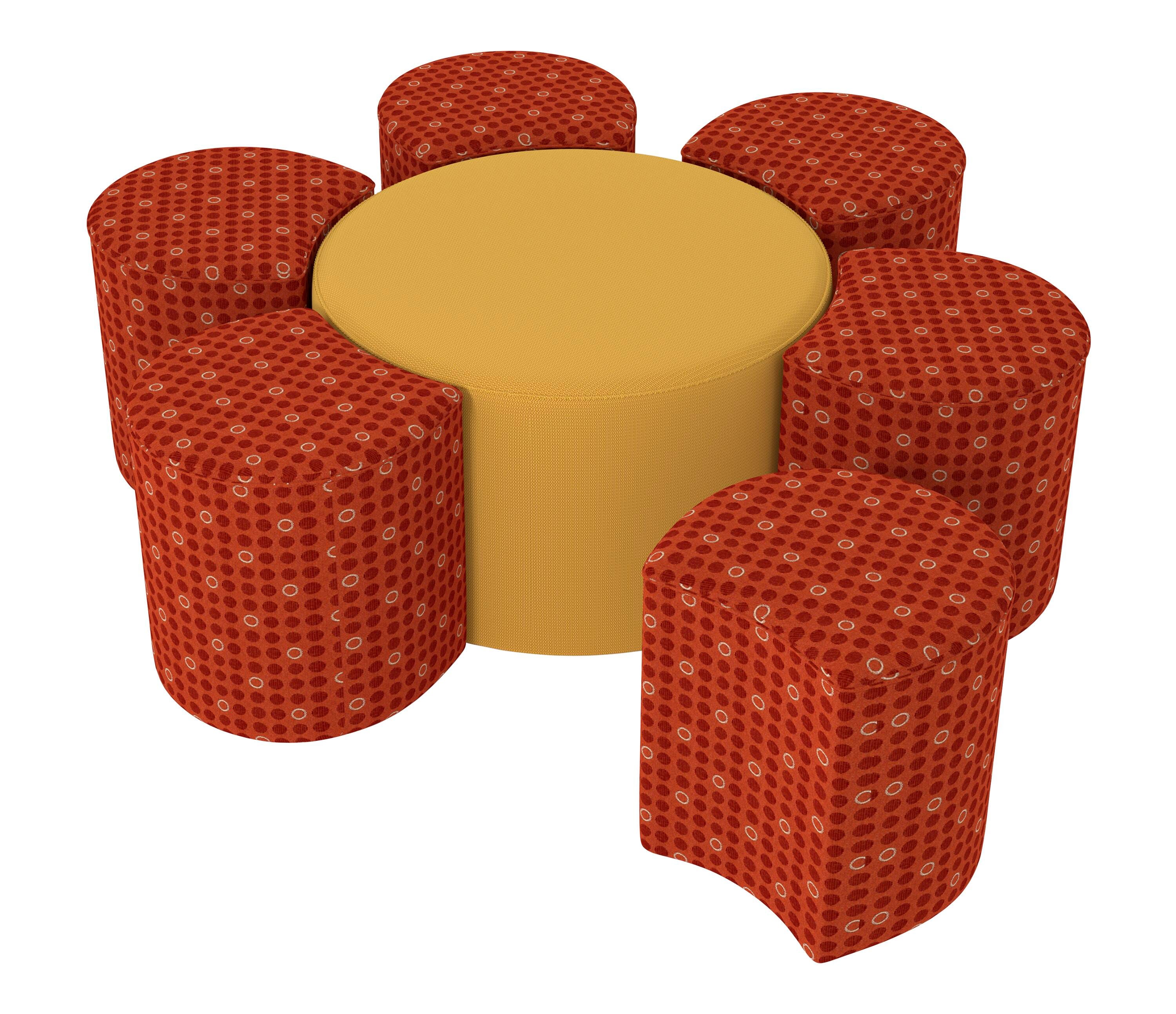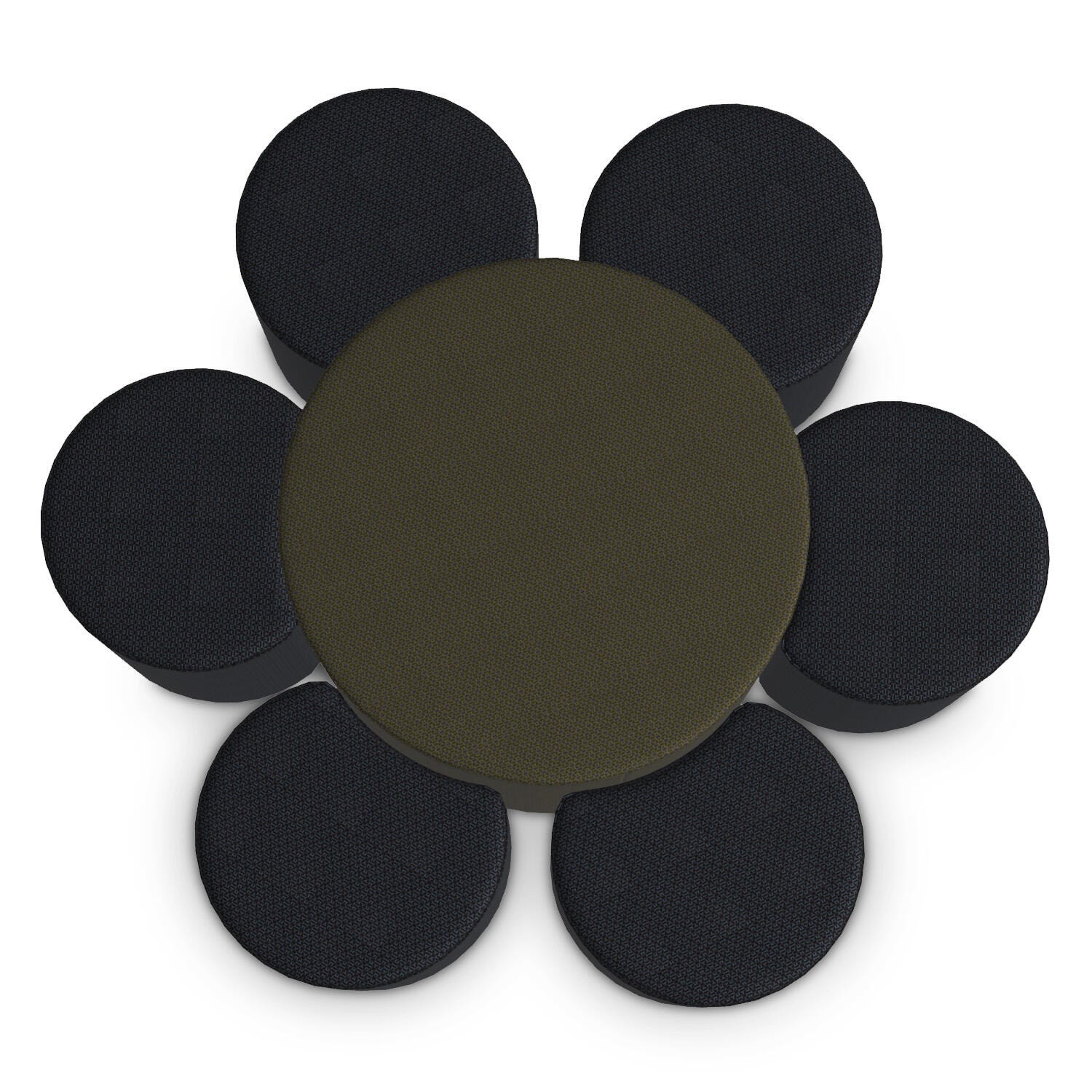 Create collaborative spaces for teachers and students with NeoLounge Sunflower soft seating solution. This fun yet practical seating solution arranges in a sunflower formation when stored to add a playful design to any space. Comes in a set of seven pieces that can be used as a footrest, a seat, or a surface, depending on preference. These high-quality pieces are built for high-traffic areas - as comfortable as they are durable to last as long as you need them.Transform spaces into learning pods with this attractive alternative seating. Available in a variety of fabric and seat colors to best match your space.Features