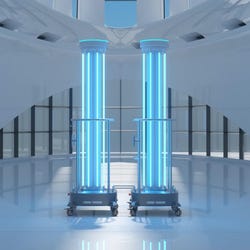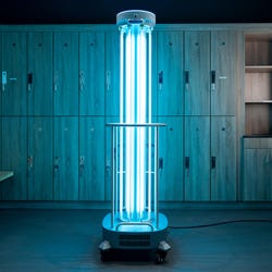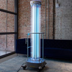 The most advanced stationary UV-C technology at a competitive price. The S1 provides powerful UV-C coverage further enhanced by intelligent safety features, daisy-chain functionality, and superior mobility. ADIBOT S1 provides 360-degree radiant light coverage, powerful UV-C disinfection, and intelligent safety features including a risk mitigation camera, PIR sensors, a motion-sensing smart safety sign, and an easy-to-use remote control. Easily positioned in key high-touch, high-traffic areas for disinfection. Control via remote or secure app interface. This model is stationary, meaning an operator must push this machine to disinfect in each location. This machine may be purchased with ESSER funds.Features