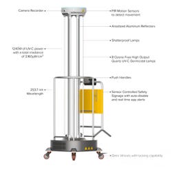 - Disinfects with 254nm wavelength using 8 shatterproof, ozone-free germicidal UV-C lamps proven effective against C.diff, MRSA, VRE, and other MDROs rated for 16,000 hours of life