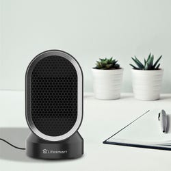 LifeSmart 600W Desktop Select Air Combo Fan/Heater with Built-In UV-LED Light, Black