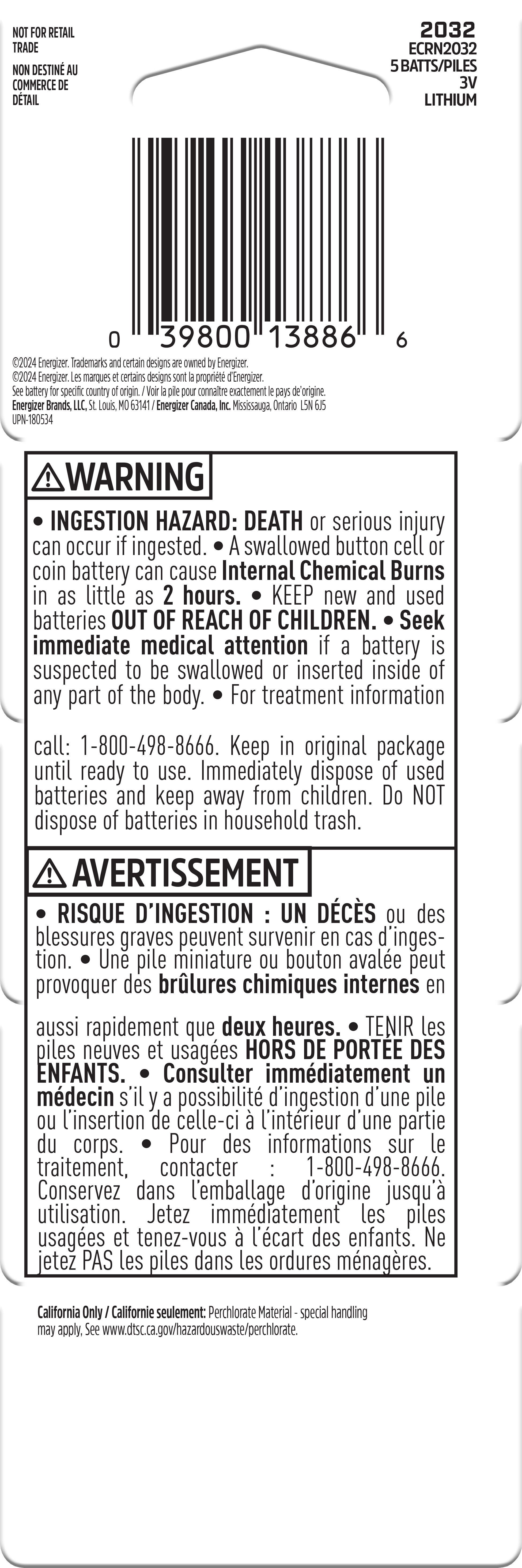 Energizer Industrial 2032 Lithium 3V Battery, Pack of 5