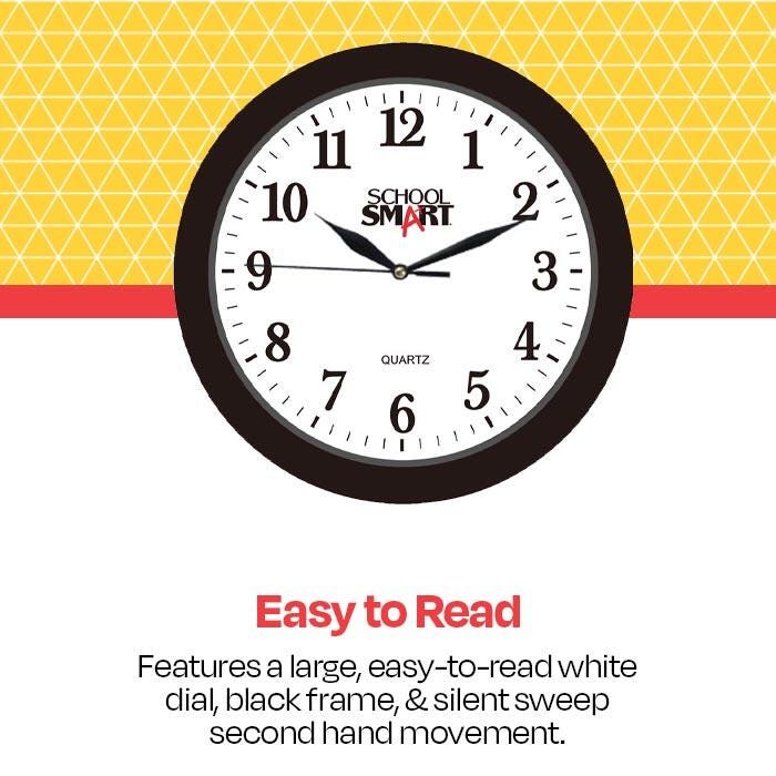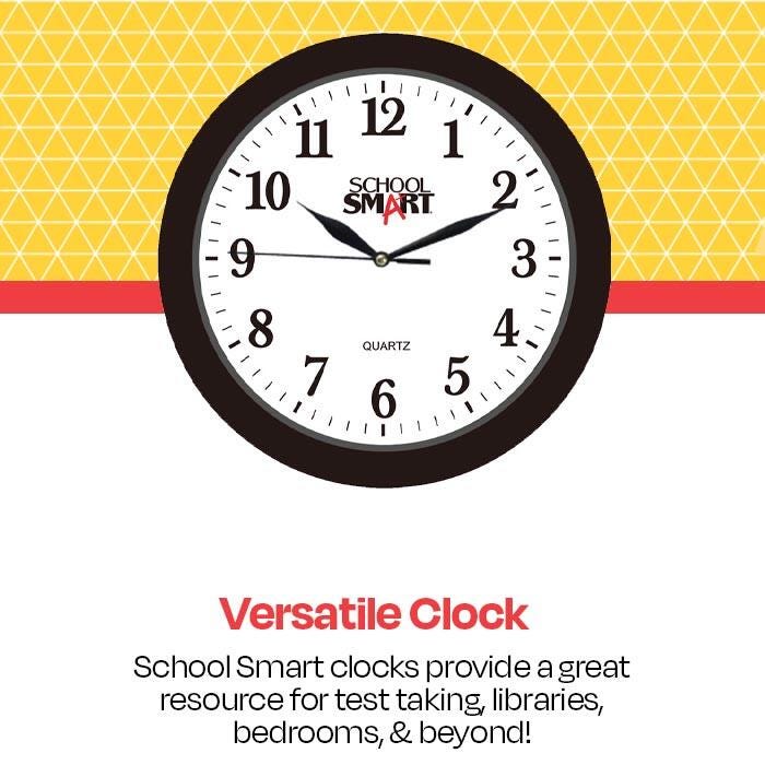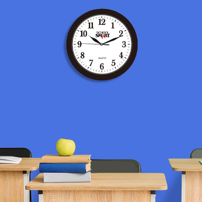 School Smart Silent Movement Wall Clock, 10 in White Dial, Black Frame
