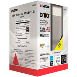 LED BR30 bulb with a frosted finish features an energy-efficient design that uses nearly 80 percent less electricity than an incandescent bulb to minimize your operating costs. LED bulb offers a 105-degree beam spread to illuminate your space with a soft white light. Dimmable bulb with 650 lumens provides up to 25,000 hours of light. 120-volt, 7.5-watt bulb also features a 3,000 Kelvin temperature, 93 CRI and medium base.