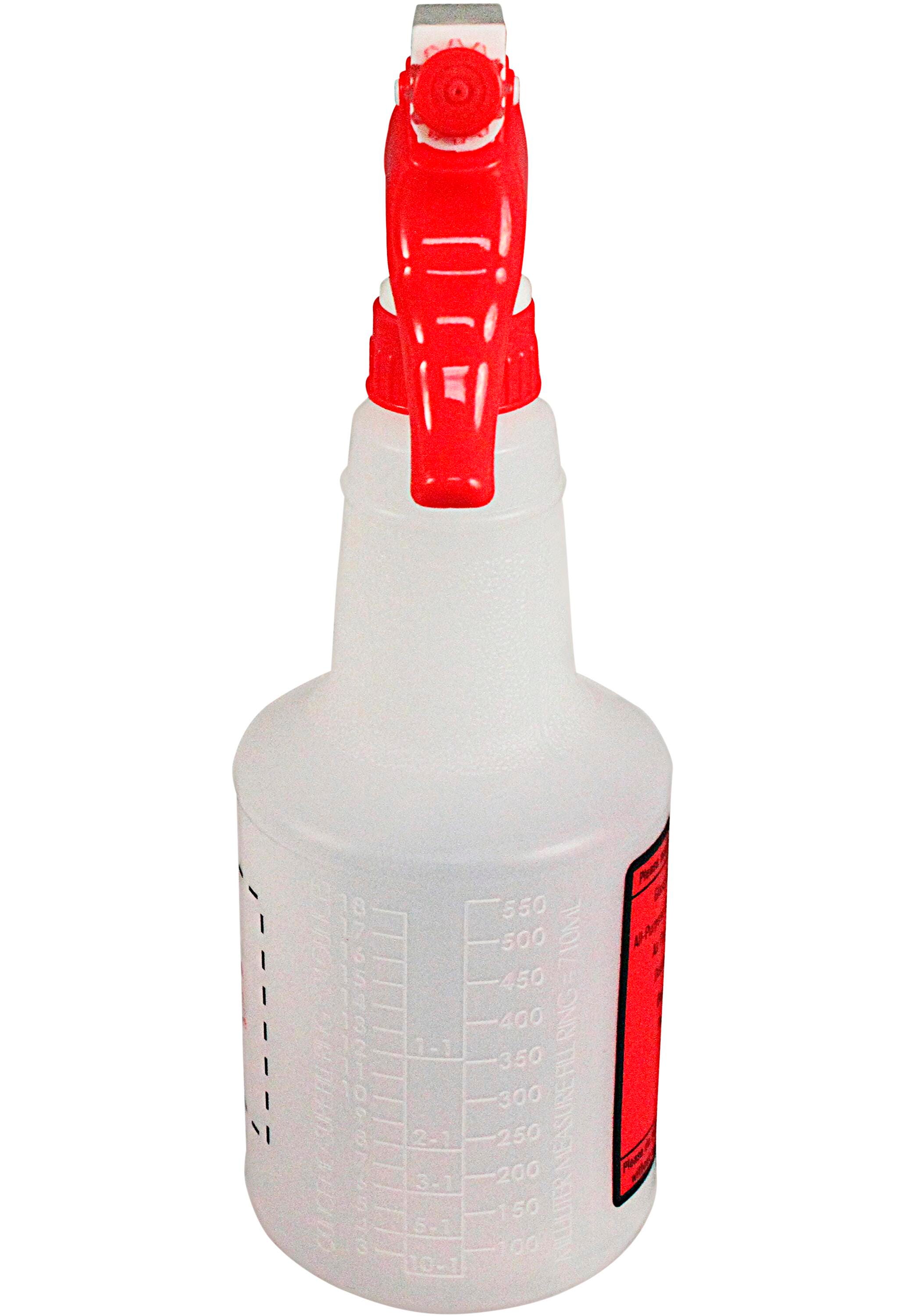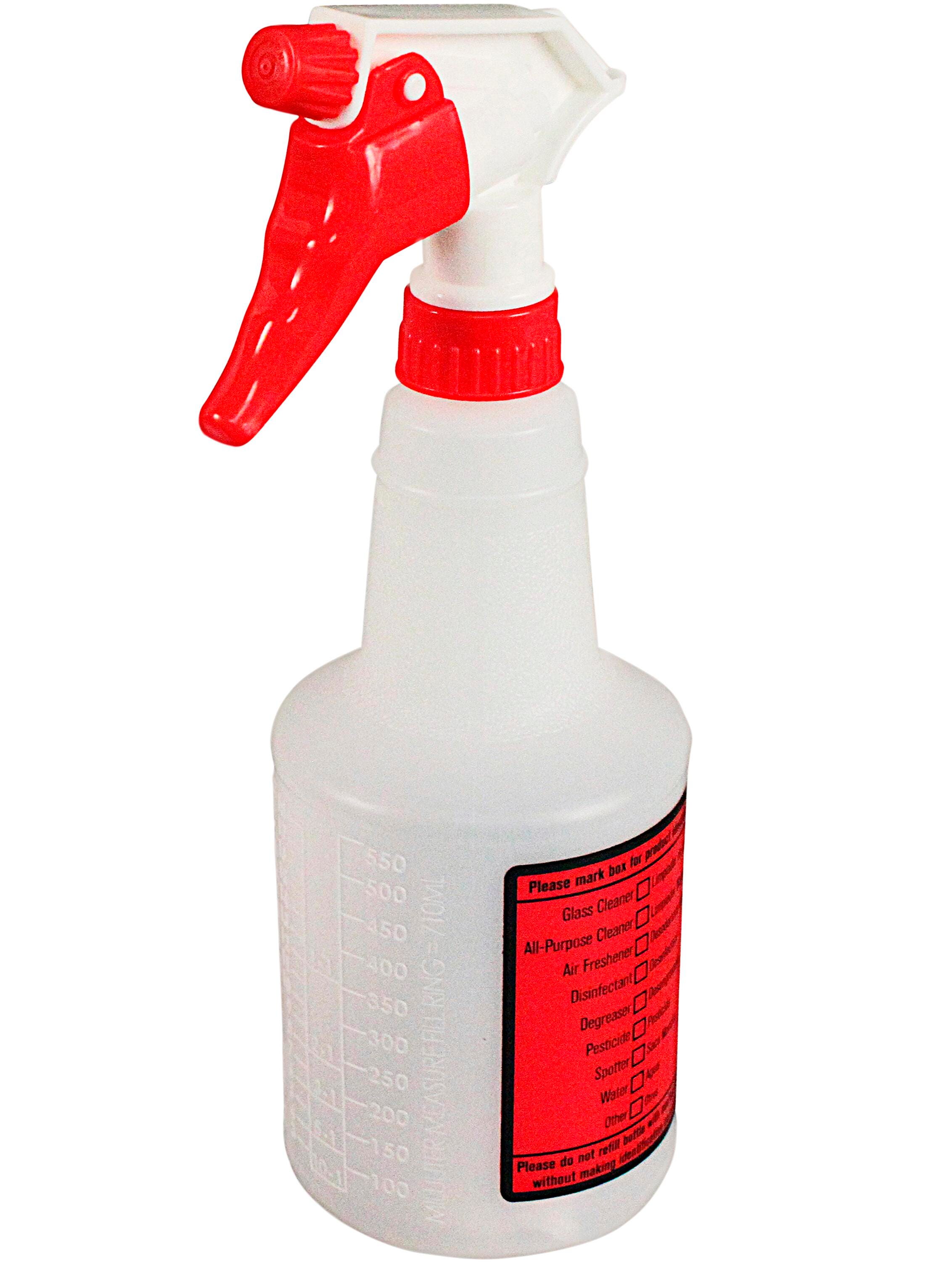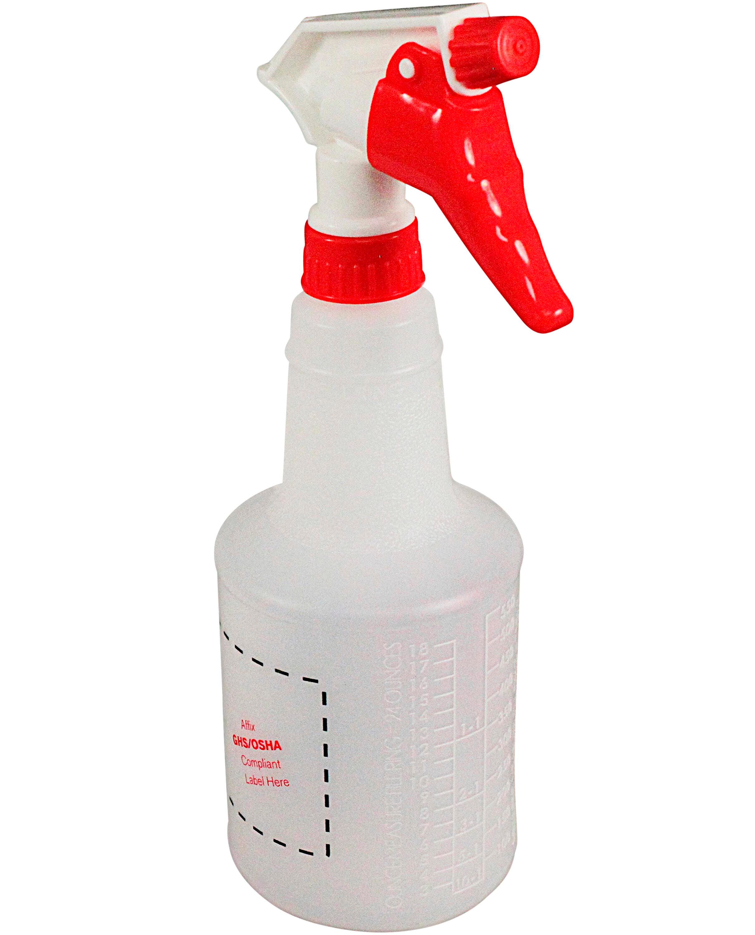 Spray Alert System includes three bottles and three trigger sprayers. Sprayers feature a no-leak design to prevent wasteful use. Embossed graduation scales and dilution ratios allow fast, easy measurements. Bilingual product listing is printed in both English and Spanish to eliminate confusion. Pack of 3