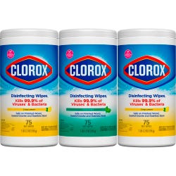 - Three containers of Clorox Bleach-Free Disinfecting Wipes, each with 75 sheets