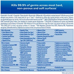 - Meets AOAC germicidal spray product test standards for hospital aerosol disinfectants