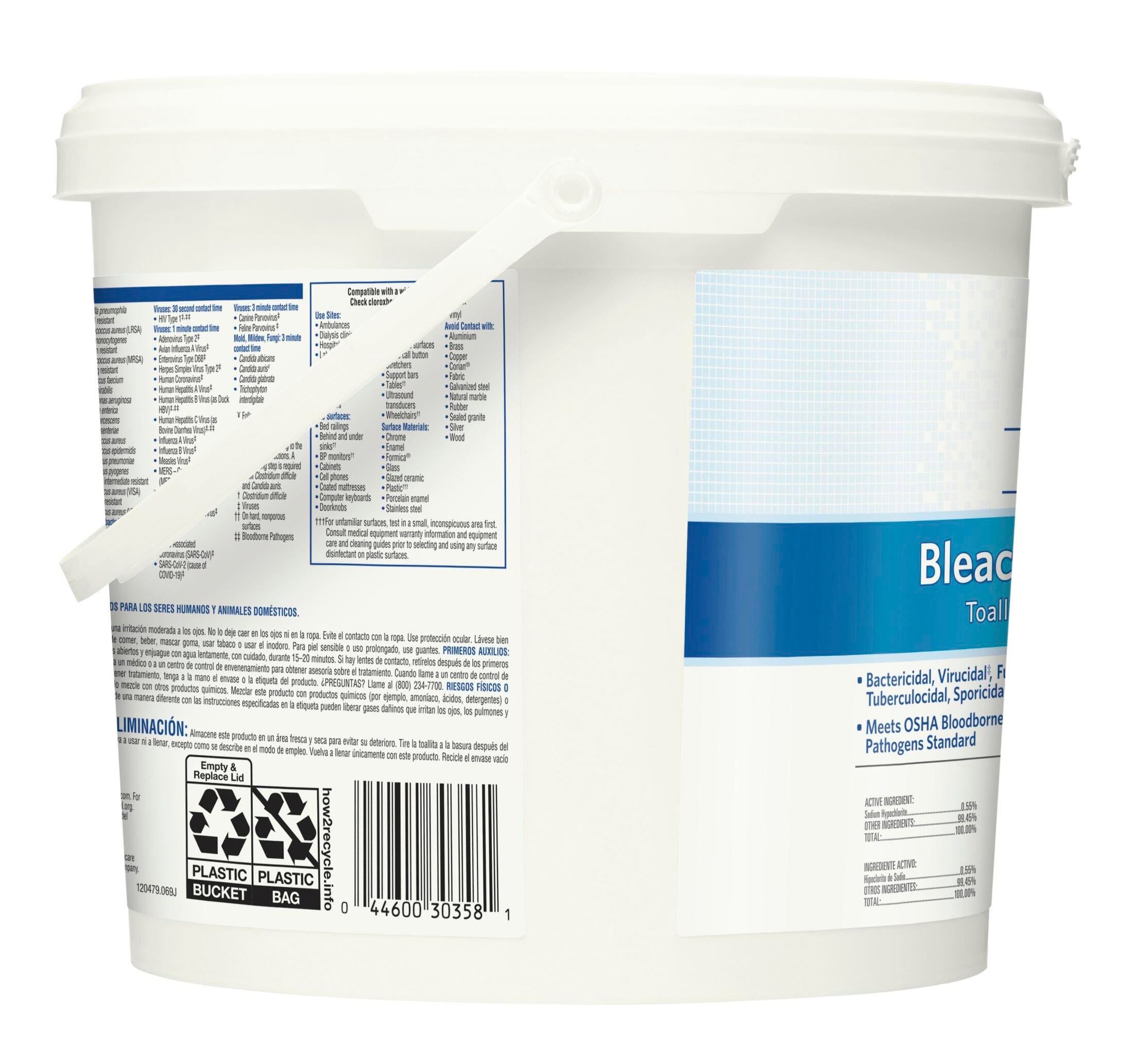 Healthcare professionals trust Clorox Healthcare Bleach Germicidal Wipes to help them overcome infection control challenges in a constantly changing healthcare environment. Ready-to-use, one-step cleaner contains a 1:10 bleach dilution to meet CDC and OSHA guidelines for disinfecting surfaces in healthcare settings. These wipes are designed to work effectively against microorganisms, bacteria, and germs. Intended for use in healthcare settings, these wipes feature an anticorrosion agent and are formulated for broad surface compatibility with healthcare surfaces including stainless steel, glass, plastic, glazed ceramic, laminated surfaces and more.Features