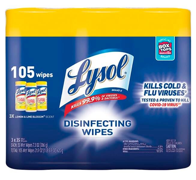 Lysol Disinfecting Wipes 3 Pack, Lemon and Lime Blossom Scent