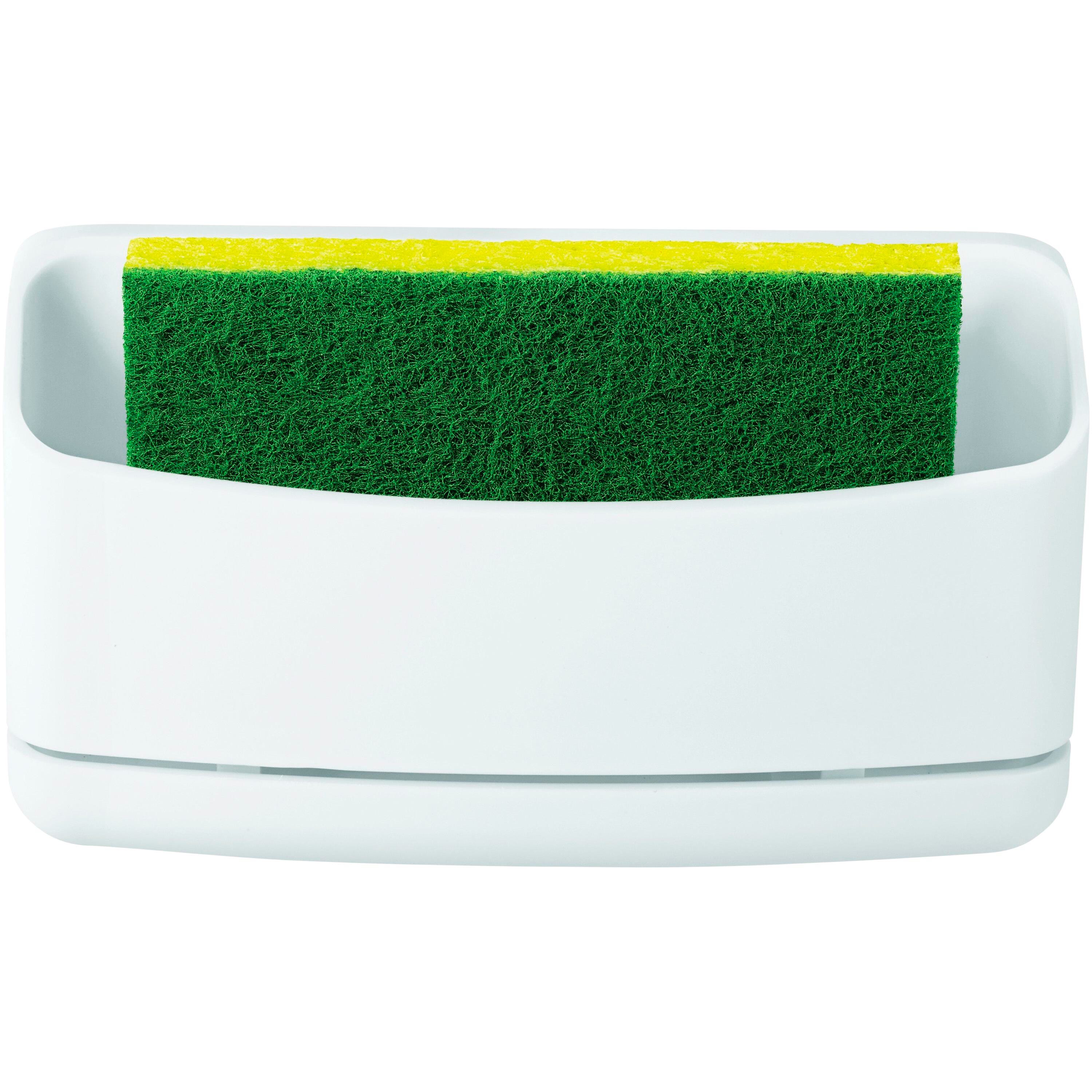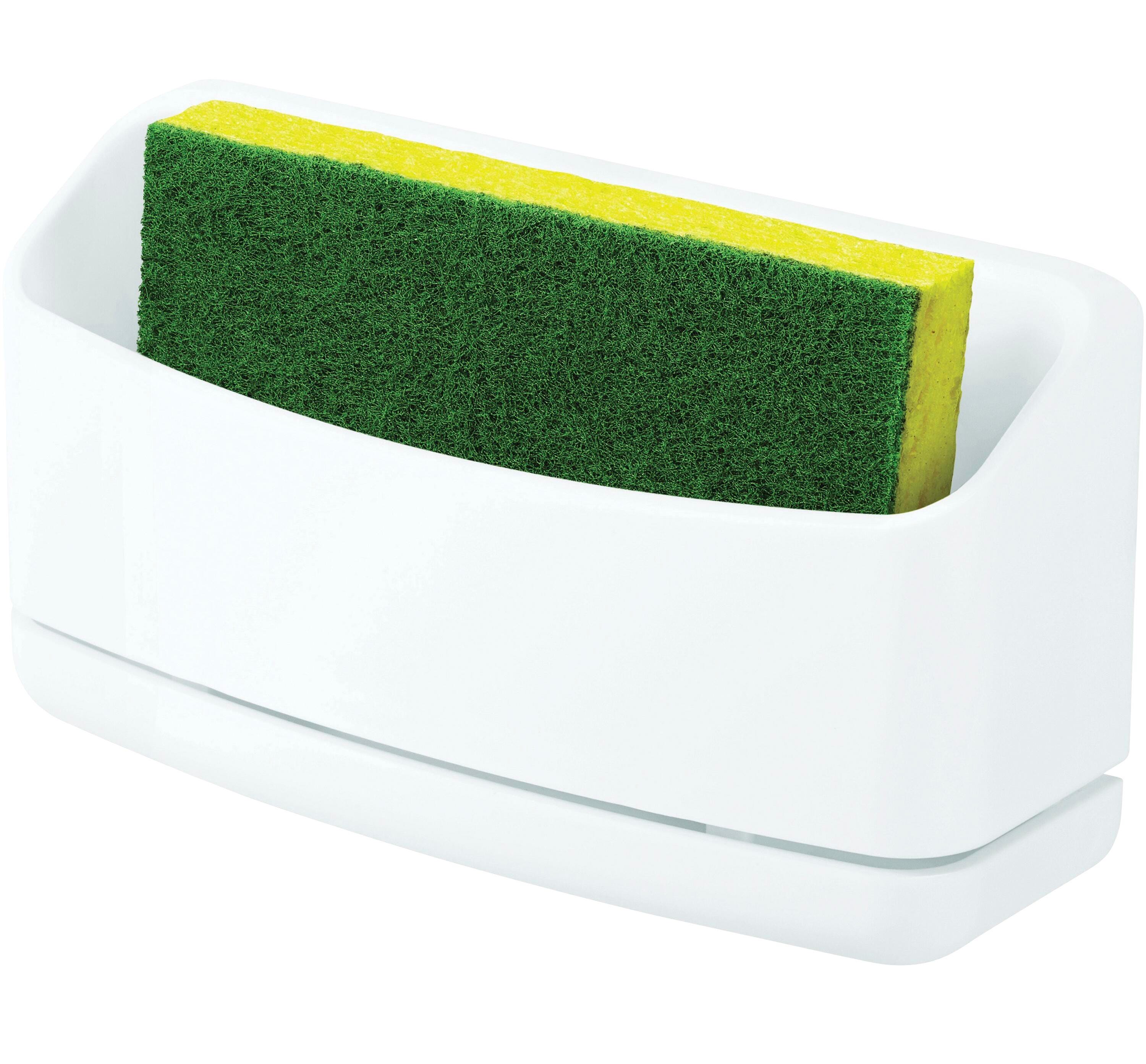 Keep the sink tidy with the Command Under Sink Sponge Caddy. Your sponge stays out of sight, but within reach when needed, by hanging it under the sink cabinet or on tile backsplash. Drain holes in the caddy allow excess water to drip out. Tray at the base catches any drippy mess but removes for quick cleaning. Using revolutionary Command Adhesive, Command products hold strongly on a variety of surfaces, including paint, wood, tile and more. Caddy removes cleanly - no holes or sticky residue. Both caddy and tray are dishwasher-safe. Caddy comes with four medium mounting strips and one Scotch-Brite Heavy-Duty Sponge. The included sponge works on a variety of indoor surfaces, such as painted drywall, finished wood, tile, metal and glass.