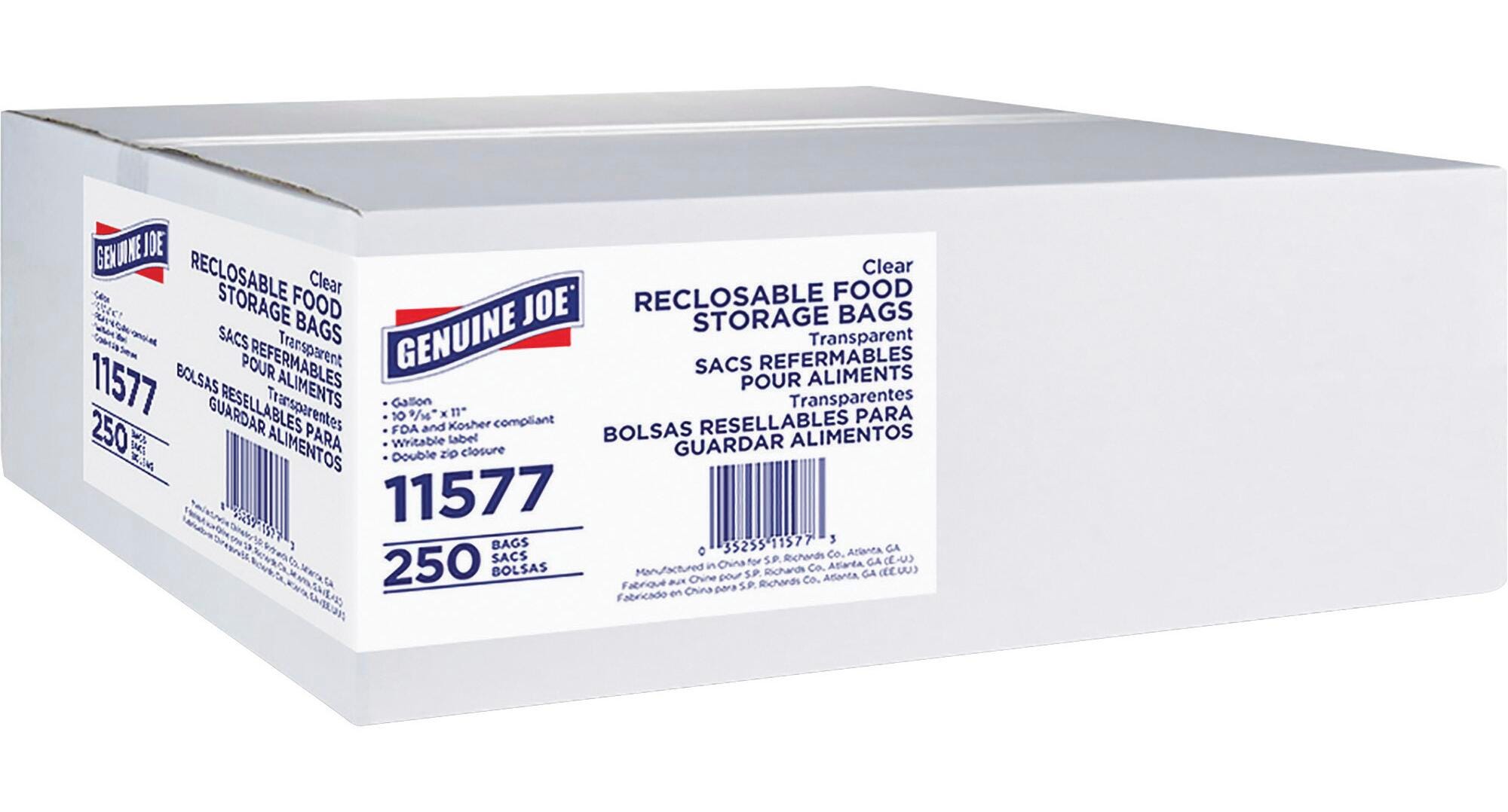 Genuine Joe Reclosable Food Storage Bags, 1-Gallon, 1.75mil, Pack of 250, CL