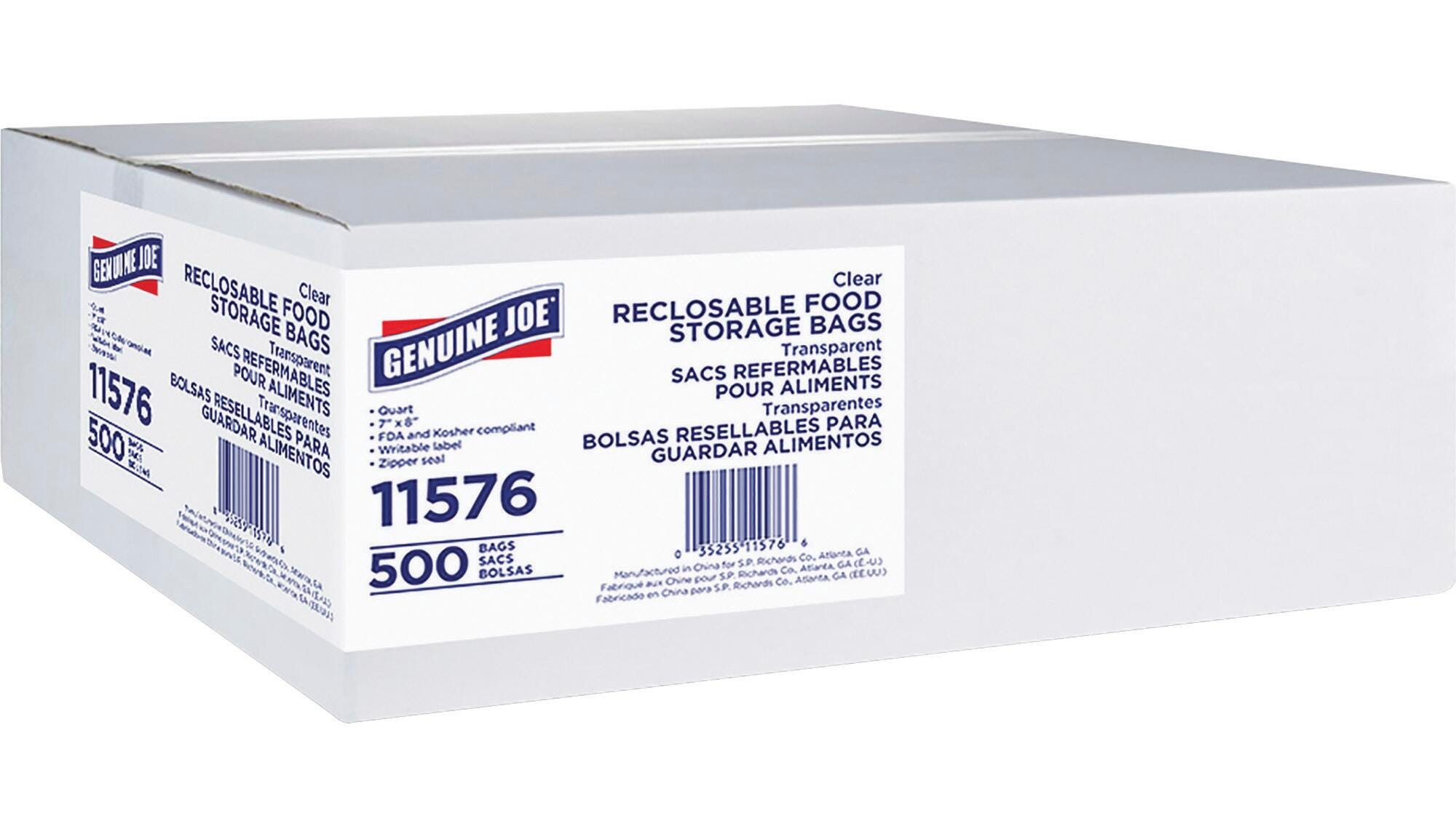 Genuine Joe Reclosable Food Storage Bags, 1-Quart, 1.75mil, Pack of 500, CL