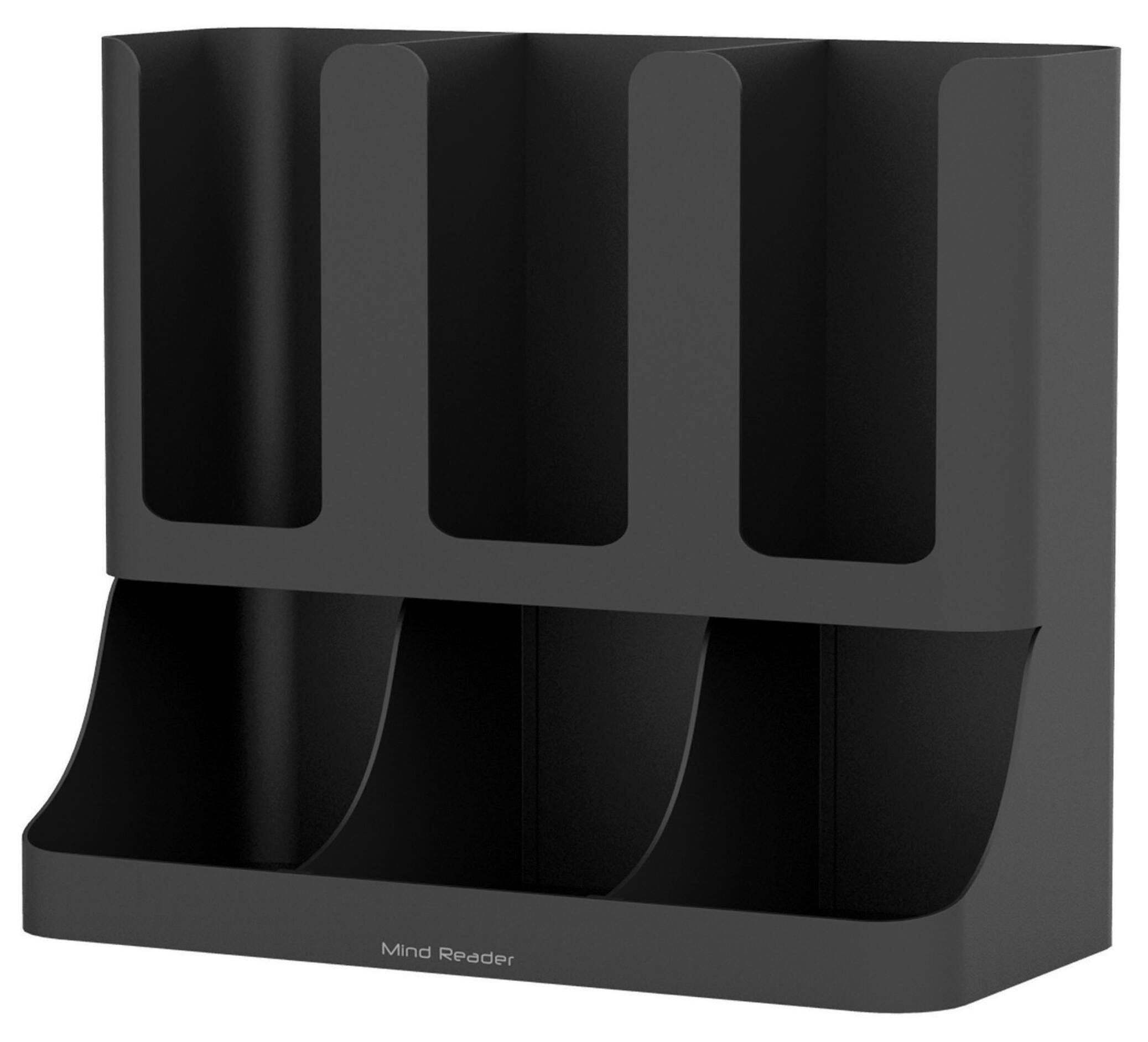 Condiment organizer features a six-compartment, open-view design to keep everything you need right at your fingertips. Rubber grippers on the bottom keep it securely in place to prevent it from sliding on smooth desks, countertops and tables. Or, mount it to the wall to free up space in smaller areas. Durable, one-piece construction is made of sturdy plastic that withstands the test of time to ensure it stays clean and looks great next to your coffee machine or simply on its own. Condiment organizer is perfect for storing sugar packets, creamers, stirrers, napkins, tea bags and more. Full unit measures 11-1/2 L x 6-1/2 W x 15 H inches.